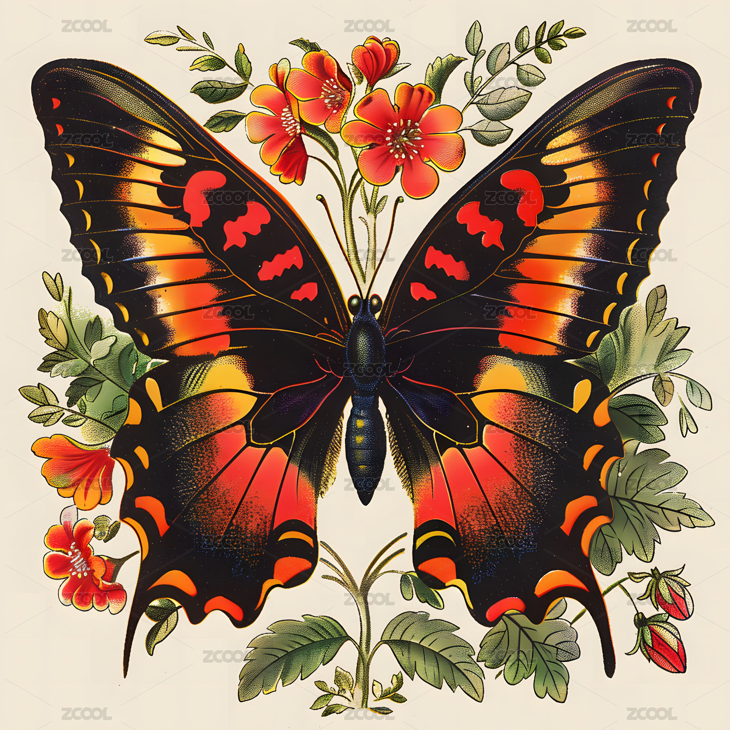 蝴蝶形状梦幻童话图案魔法幻想场景插图