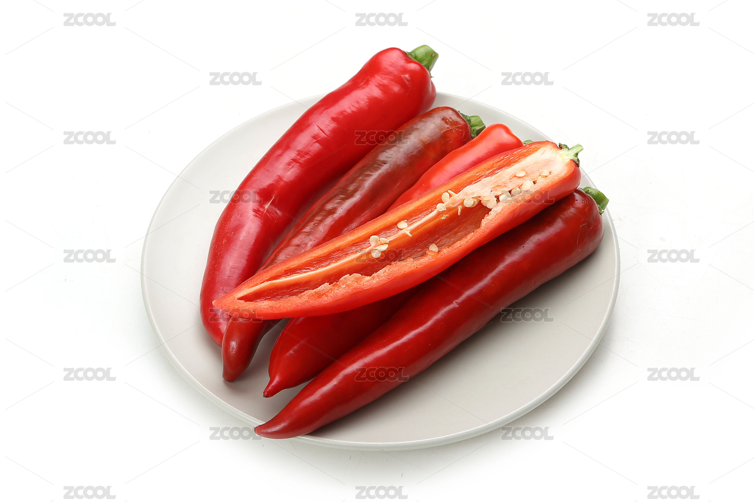白底上放着红辣椒