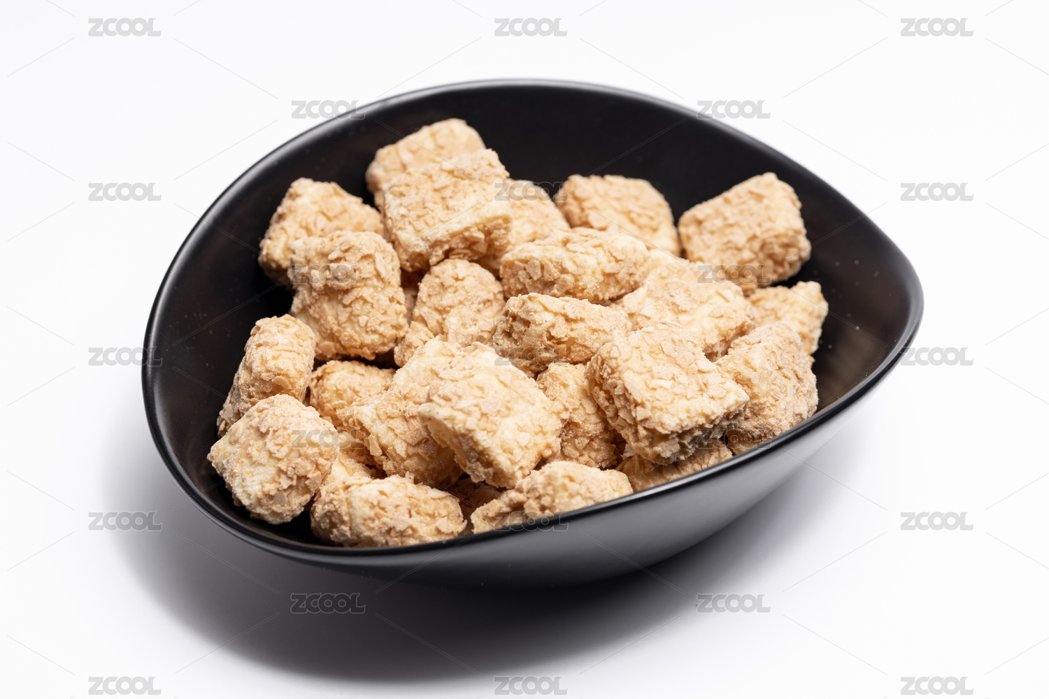 白色背景上摆放的黑芝麻酥糖