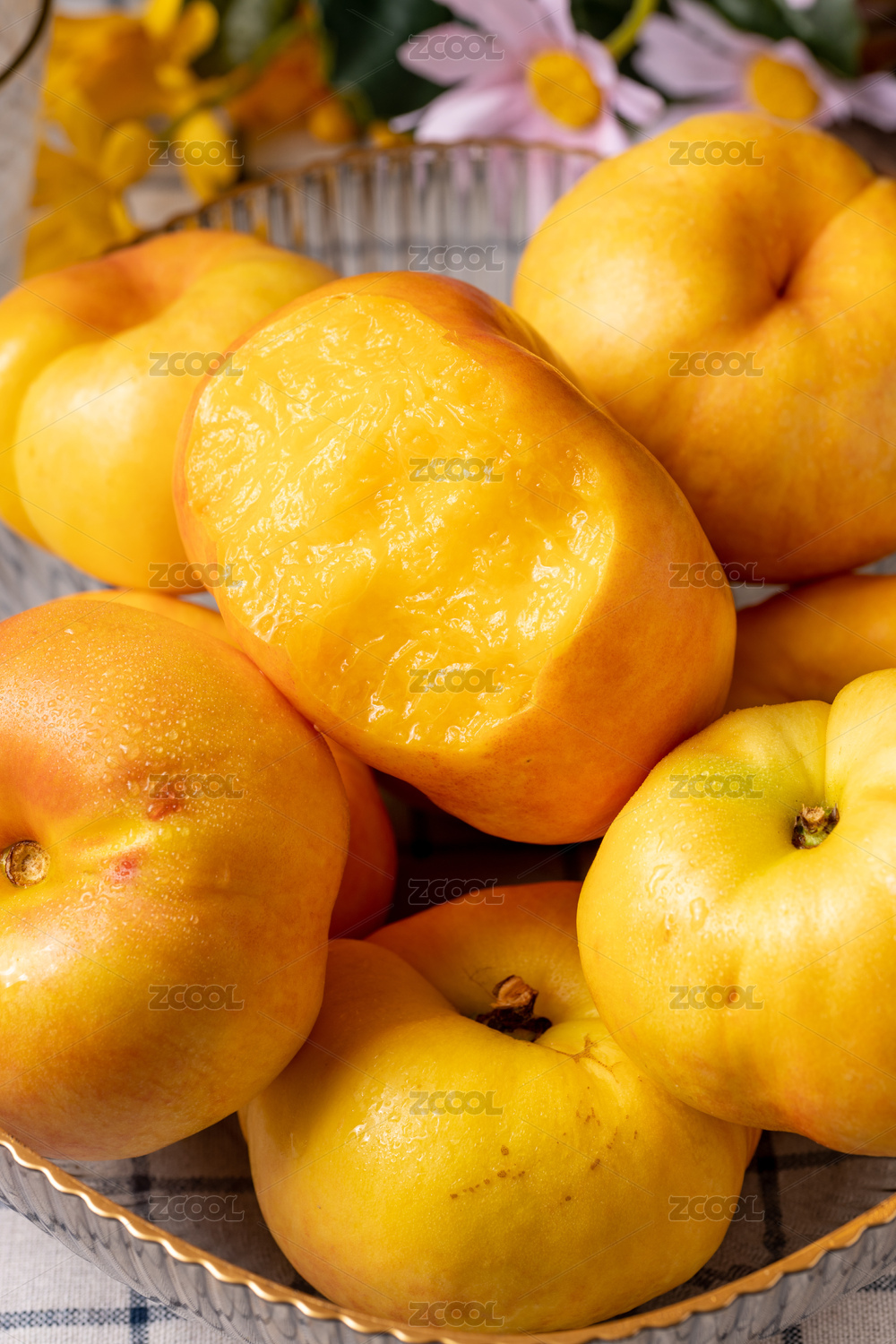 山东黄油蟠桃,果实,果肉,水果,沂蒙山黄油蟠桃,油蟠桃,蟠桃,黄油蟠桃,黄蟠桃,黄金油蟠桃