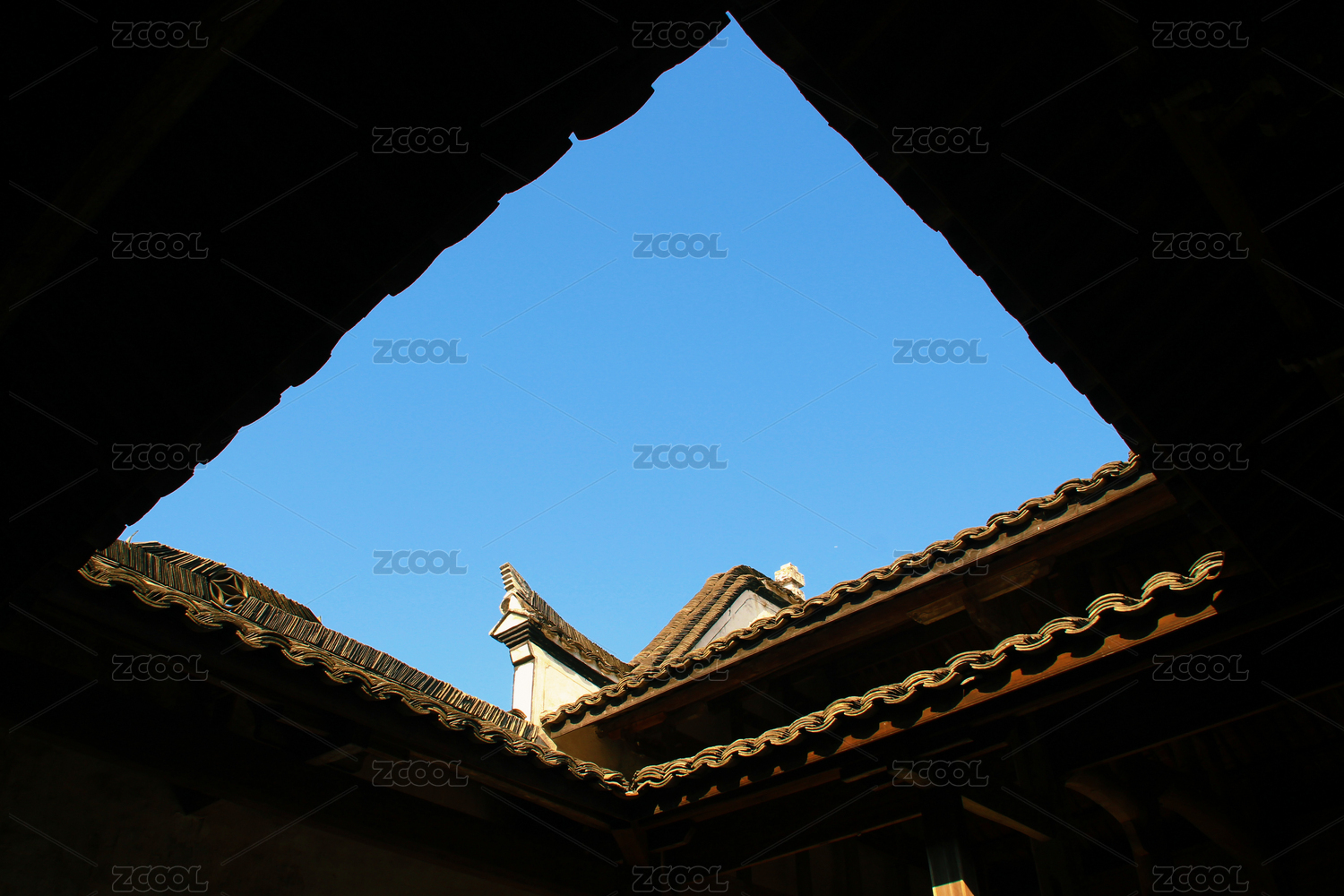 蓝天下的中国古代房屋屋顶