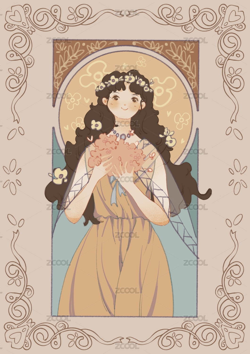 卡通二次元星座花神雪花孔雀装扮的复古少女