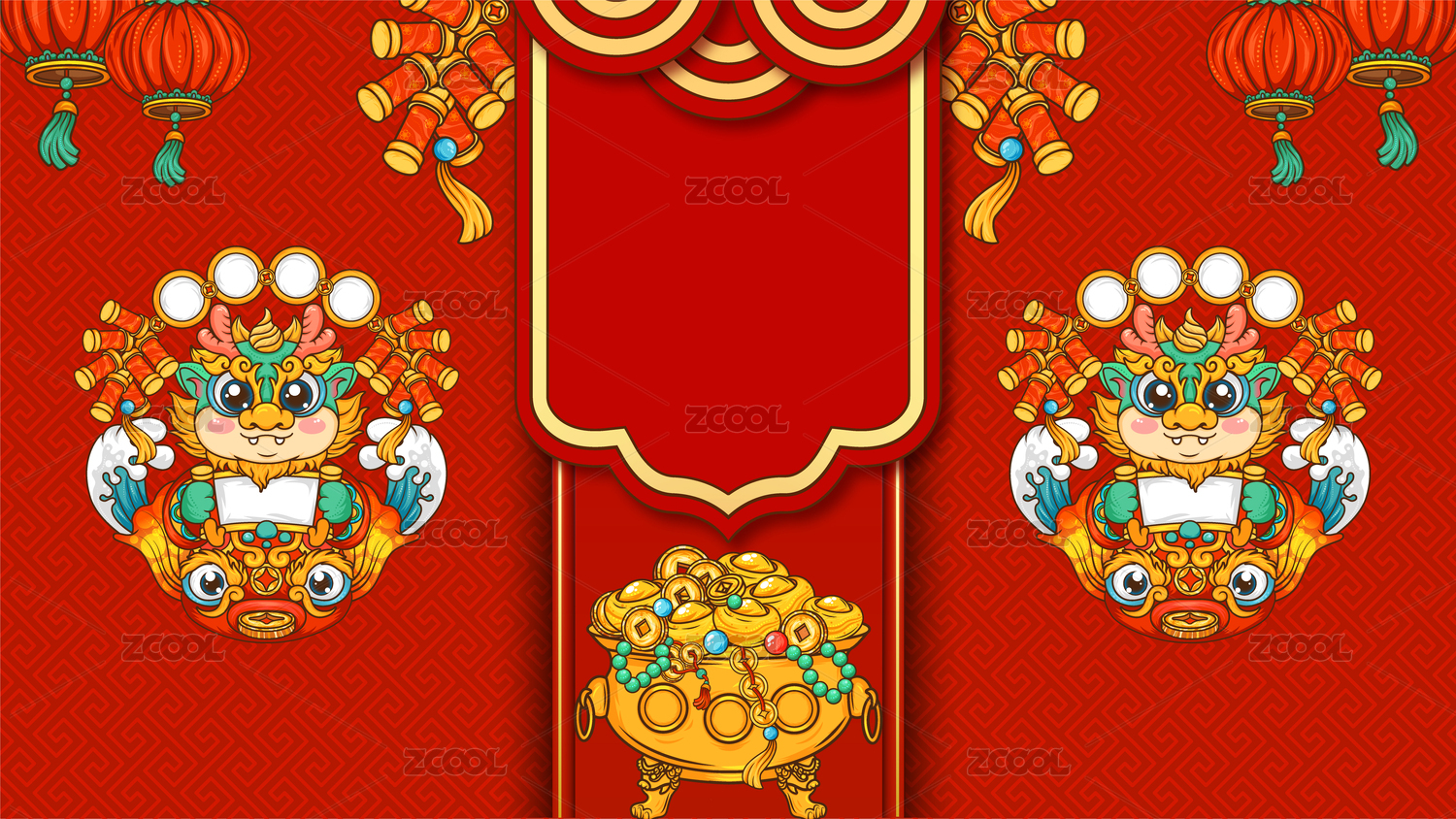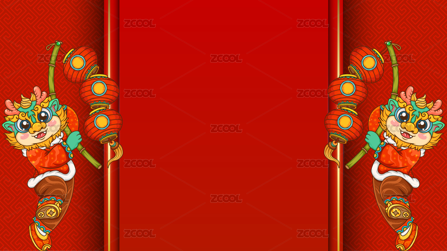 中国矢量新年红灯笼神龙拜年祝福红色背景板