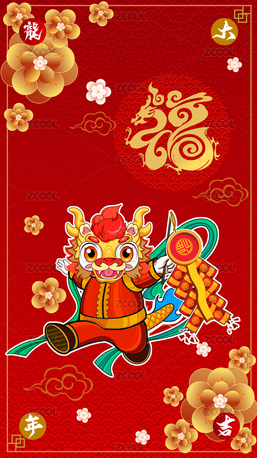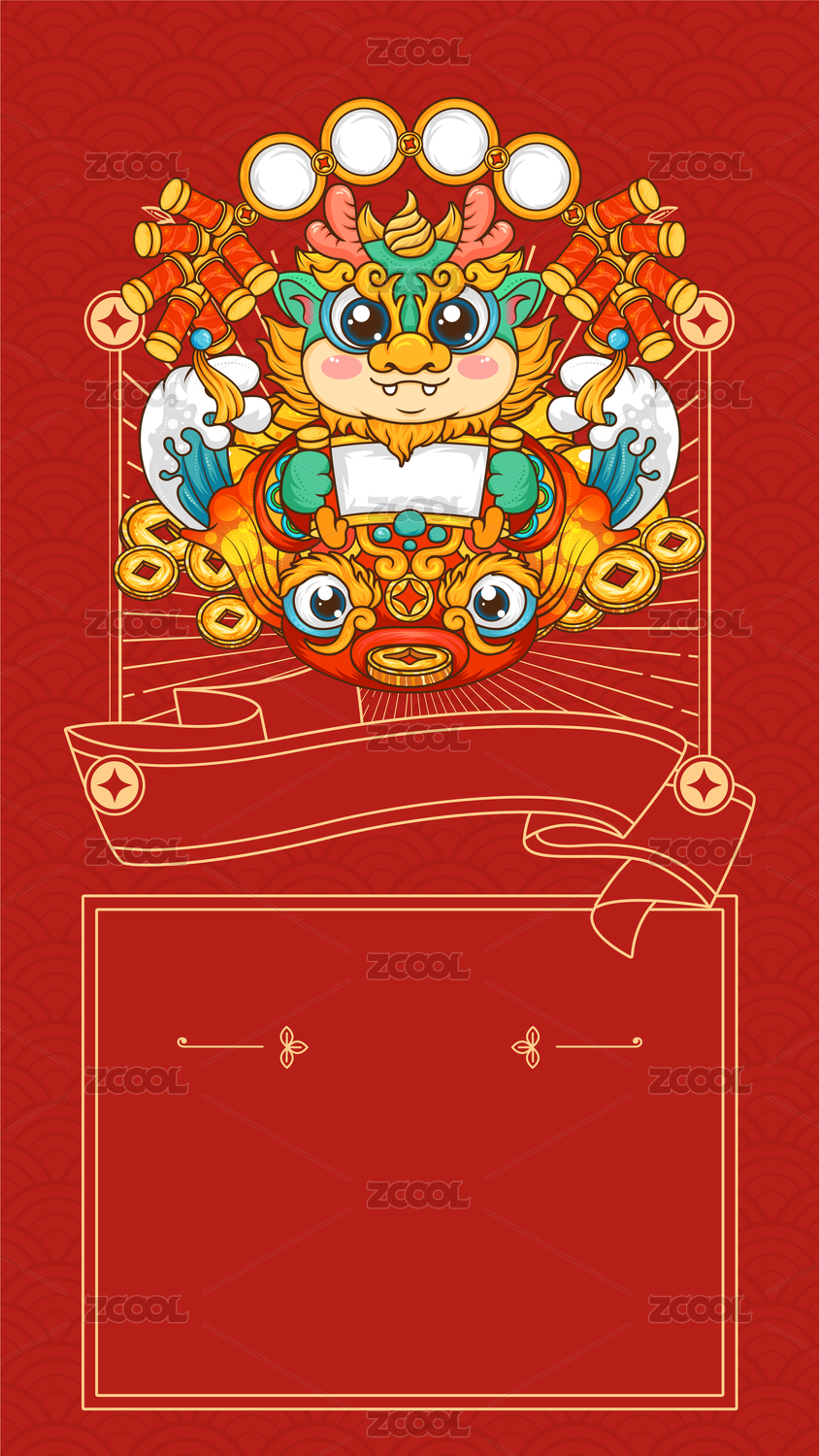 龙年生肖大吉大利红包封面背景矢量插画背景