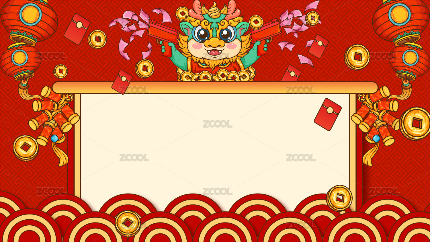 中国传统生肖龙年喷钱枪钞票可爱国潮背景板