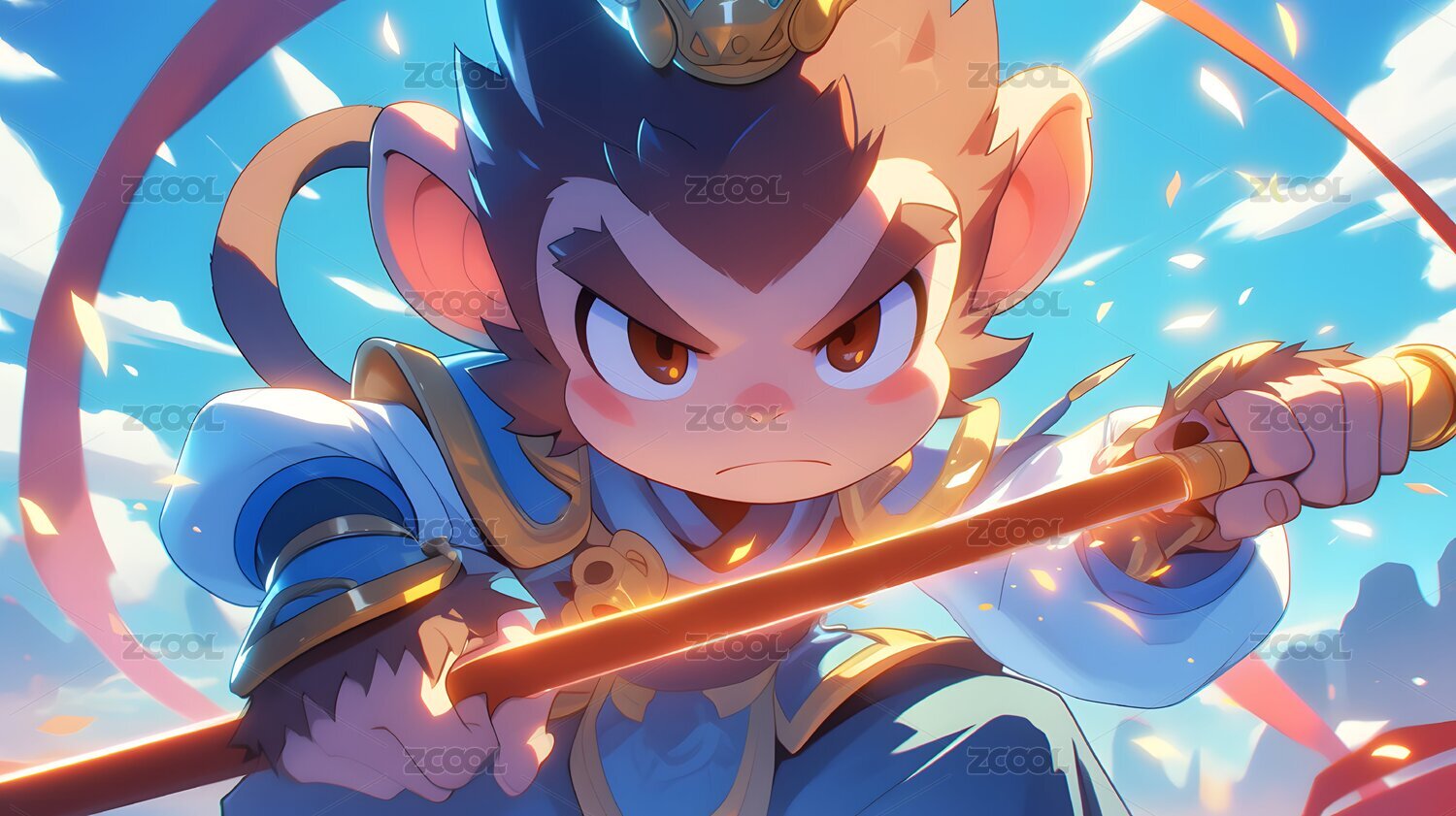 猴子,悟空,神话,中国,武术,古代,复古,铠甲,金箍棒,棍子