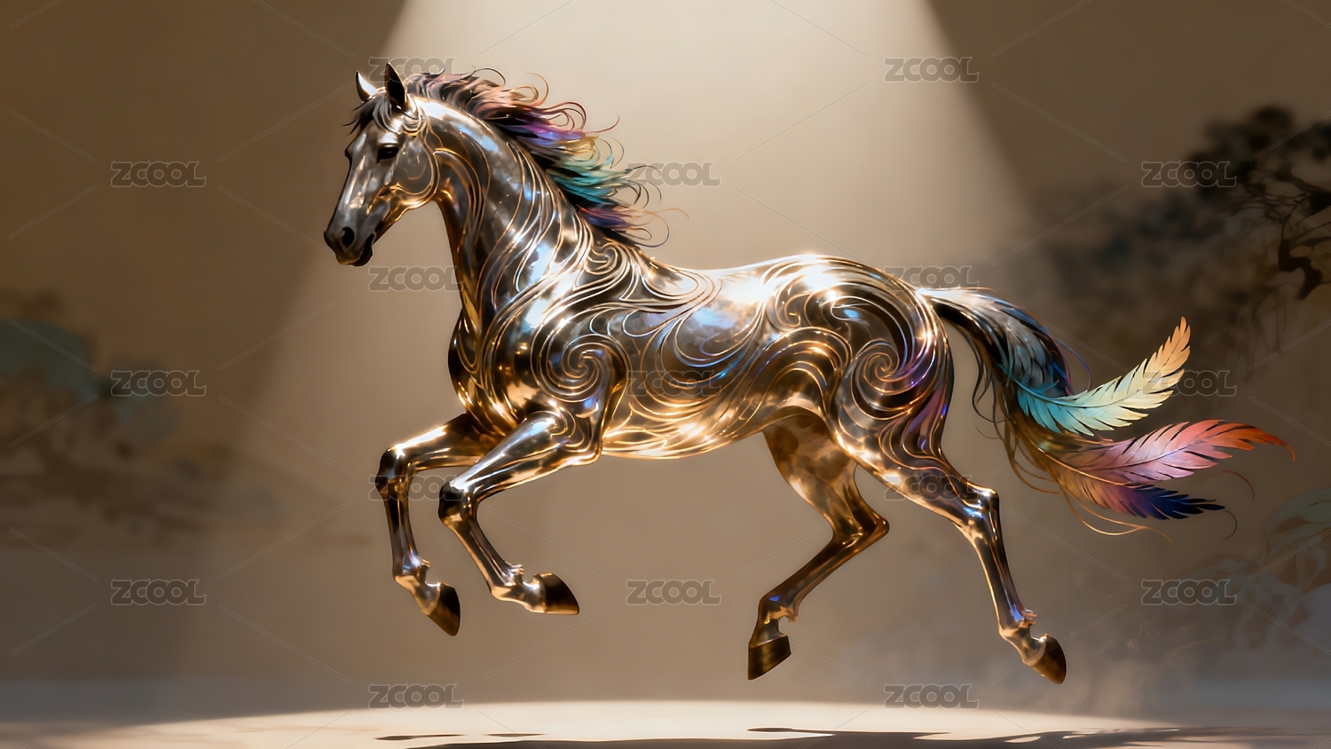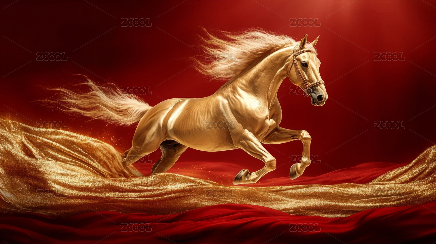 中国风金色汗血宝马奔跑的红色喜庆背景