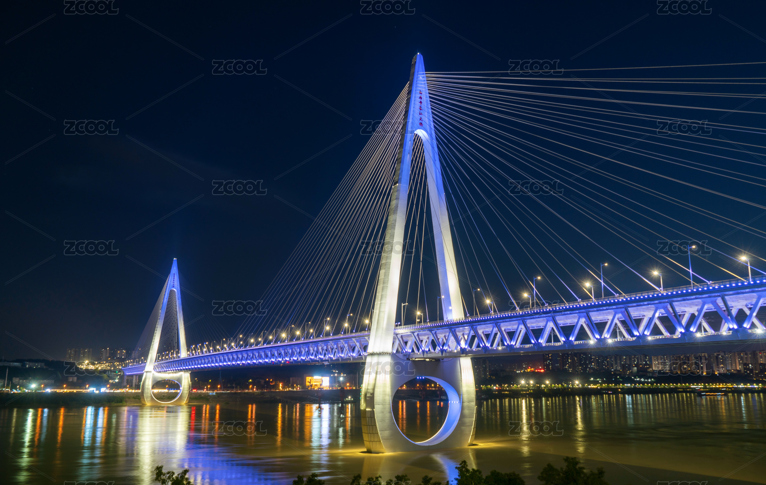 汉中龙岗大桥夜景水面倒影