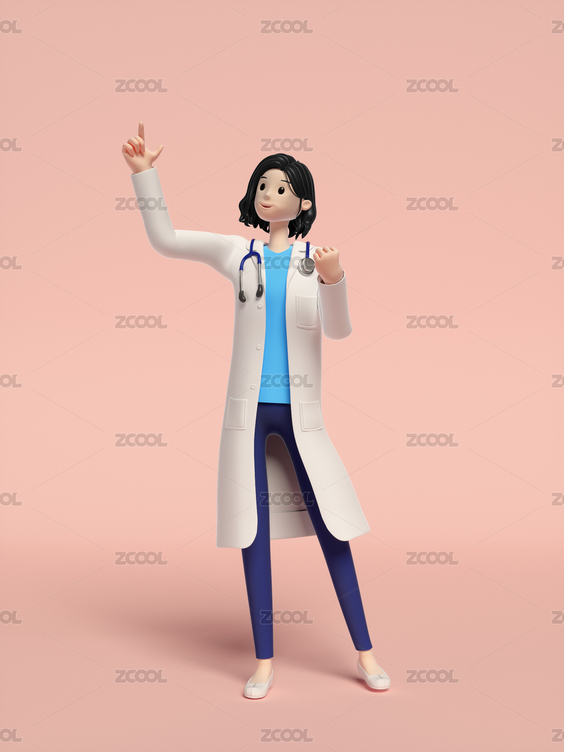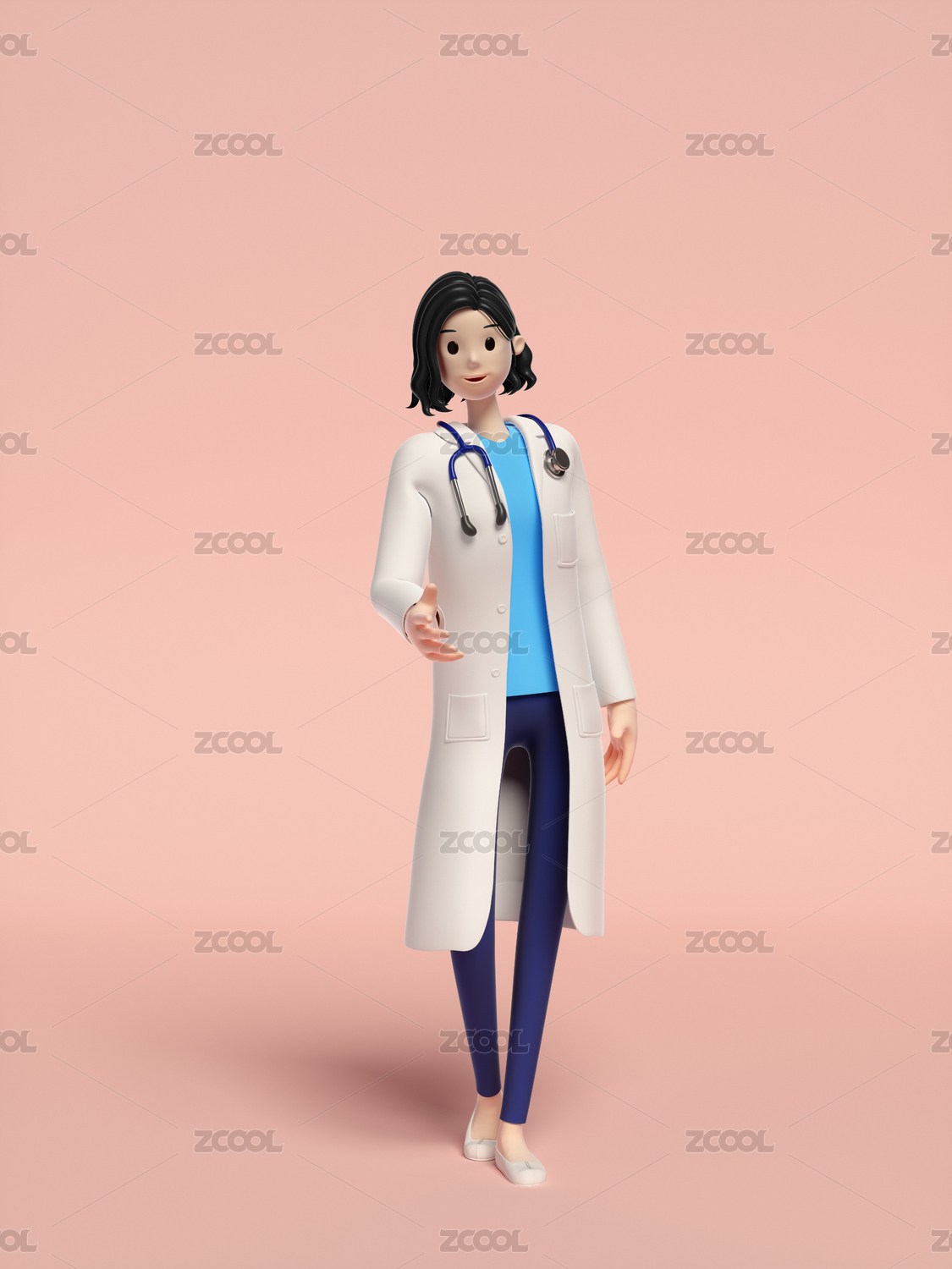 三维渲染的年轻女医生