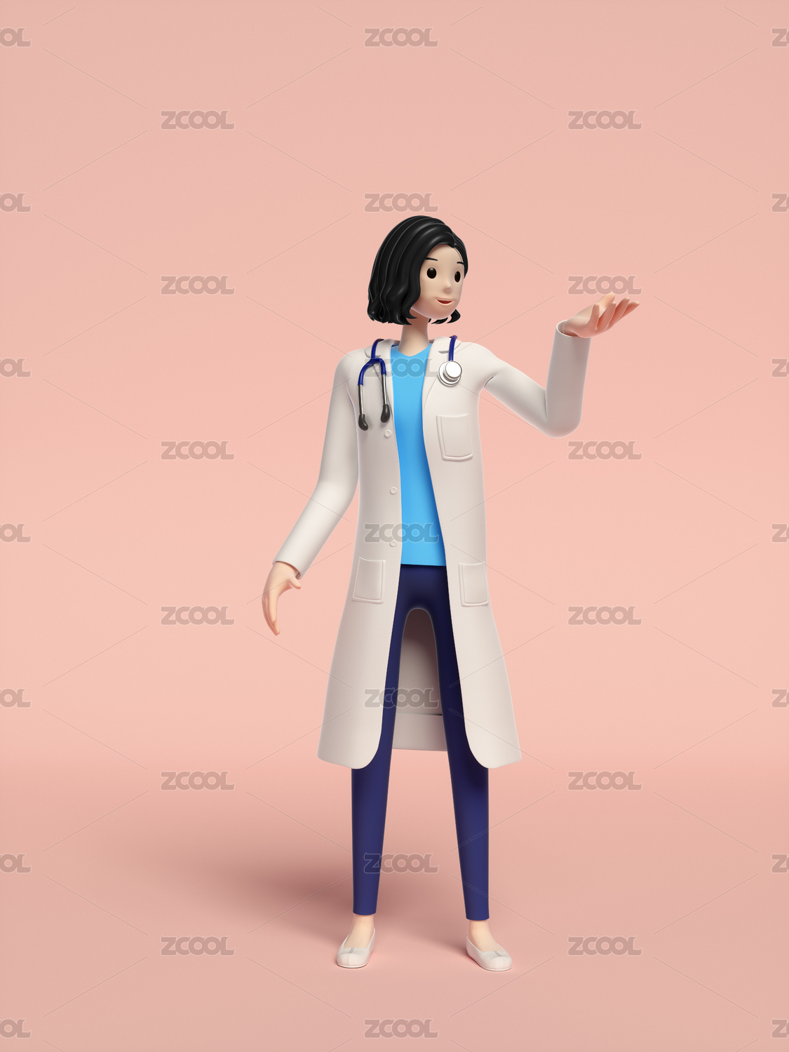 三维,渲染,女医生,医学,积极,站立,开心,微笑,介绍