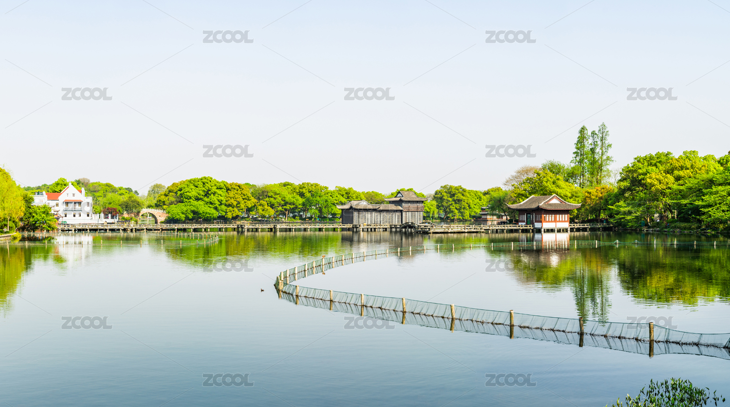 浙江杭州西湖风景区春天白堤苏堤湖畔春色