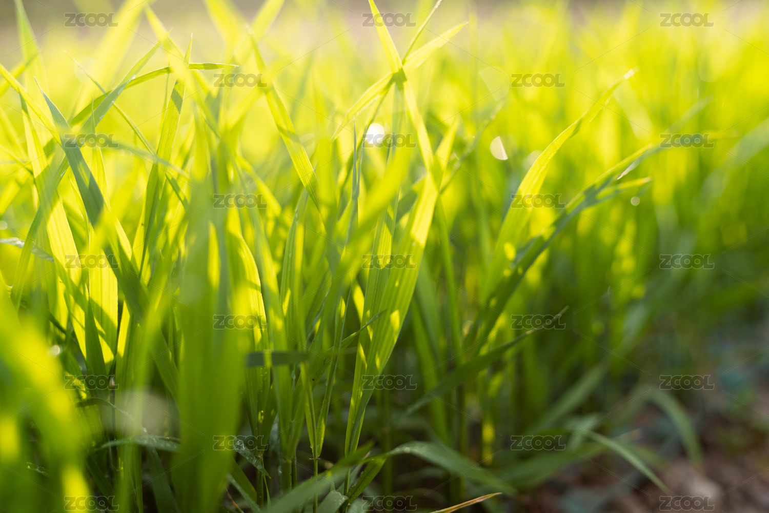 夏天嫩绿色稻田在阳光下生长等待秋天的成熟