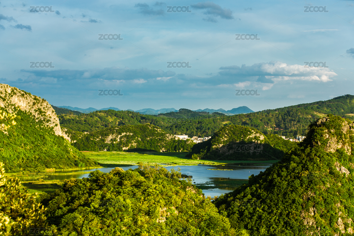 晴朗夏季拍摄的丹东绿江村小天池