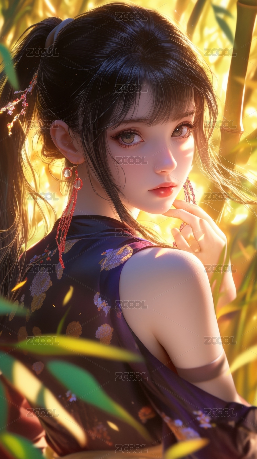 华丽古风少女与雄鹰相伴,展现东方神秘之美