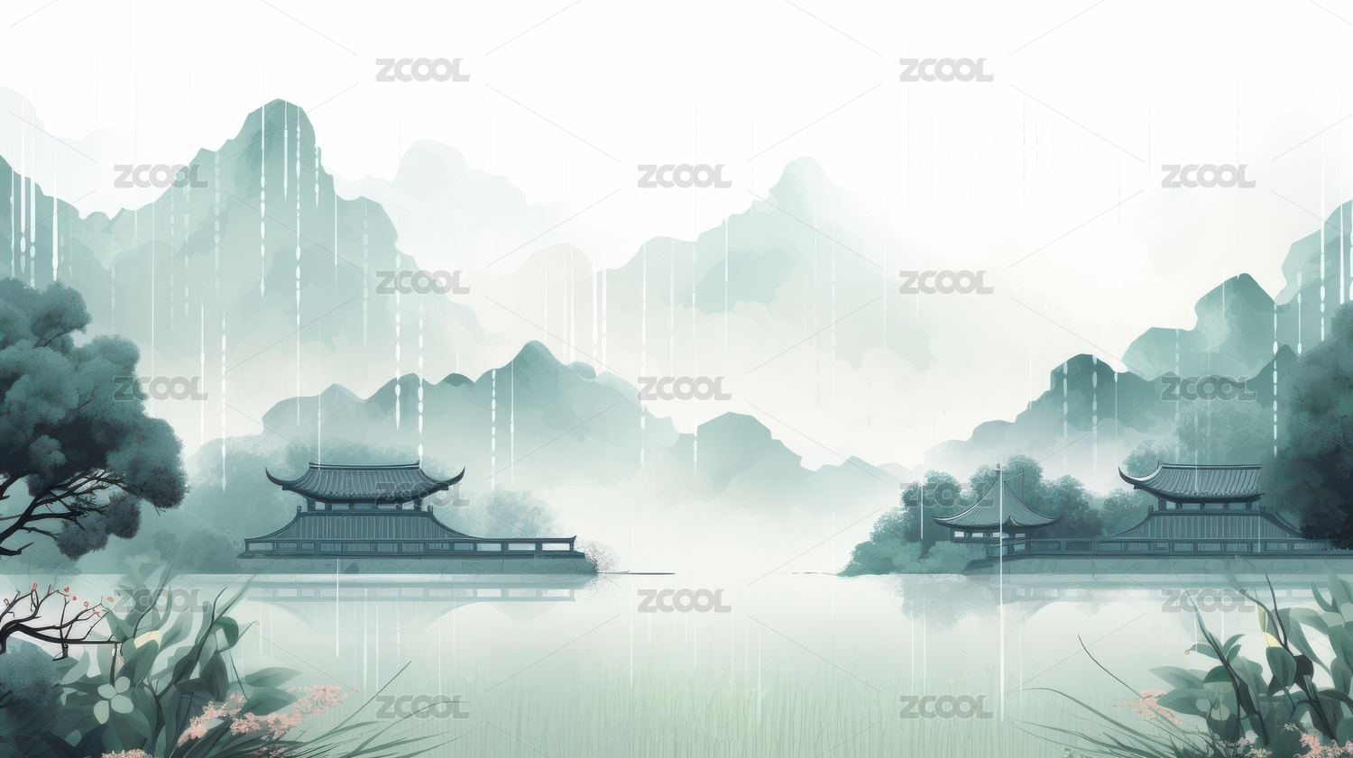 雨中荷塘插图背景