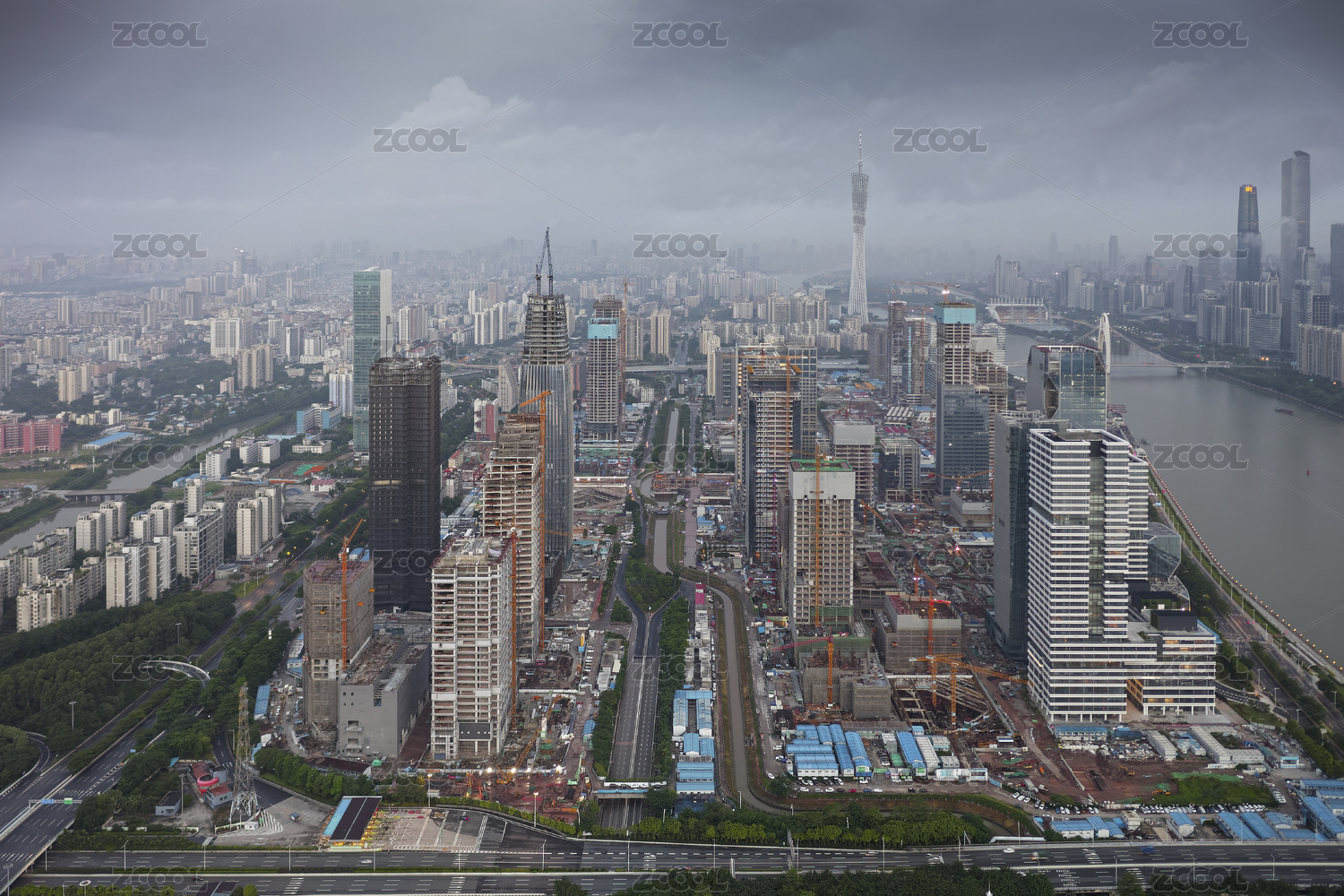 中国广东广州,航拍建设中的琶洲电商总部区