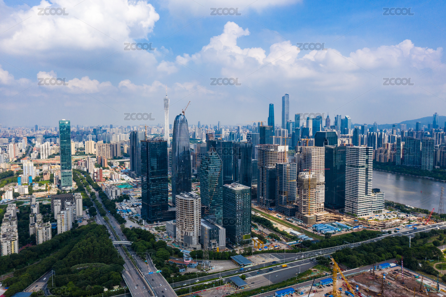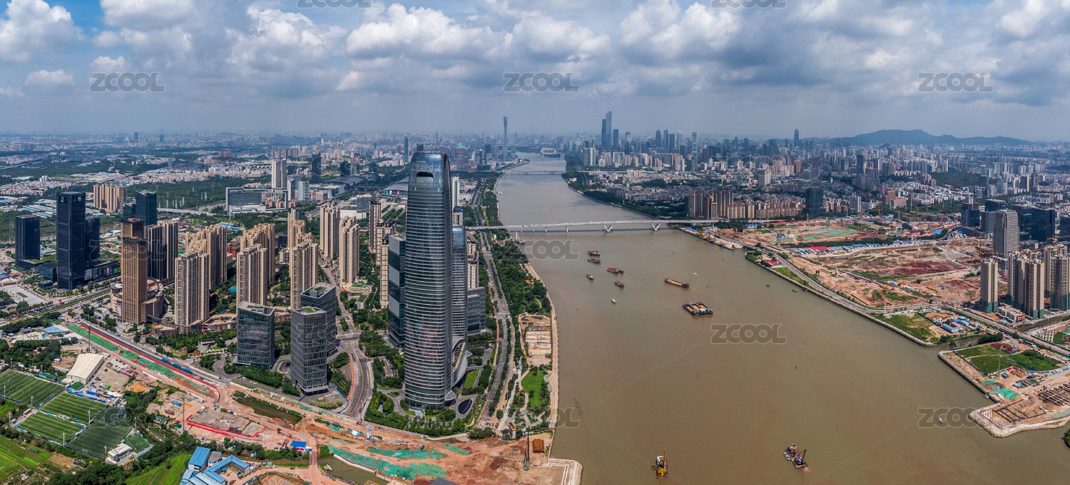 全景航拍广州琶洲CBD建筑工地