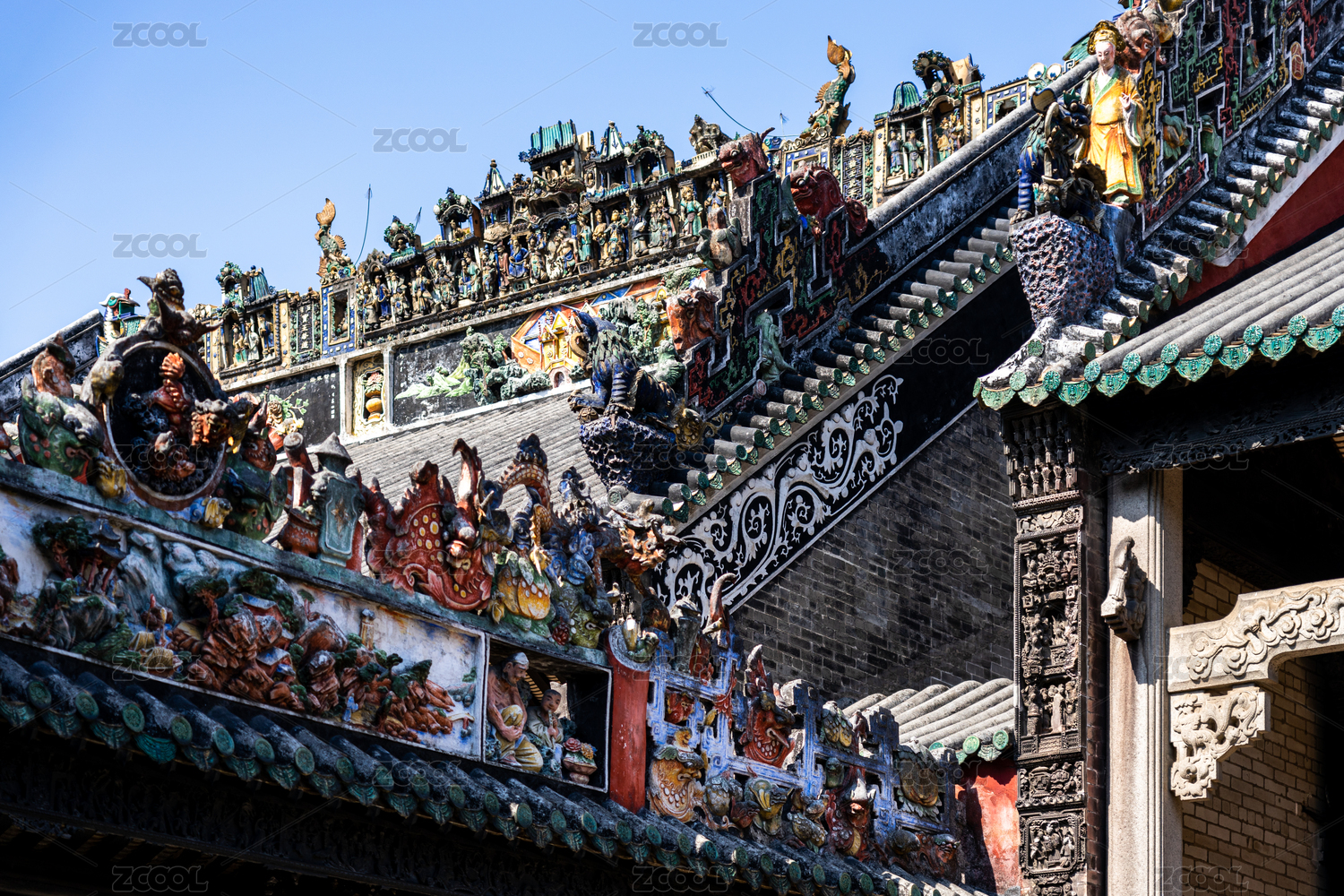 中国广州陈家祠岭南建筑屋顶灰塑陶塑