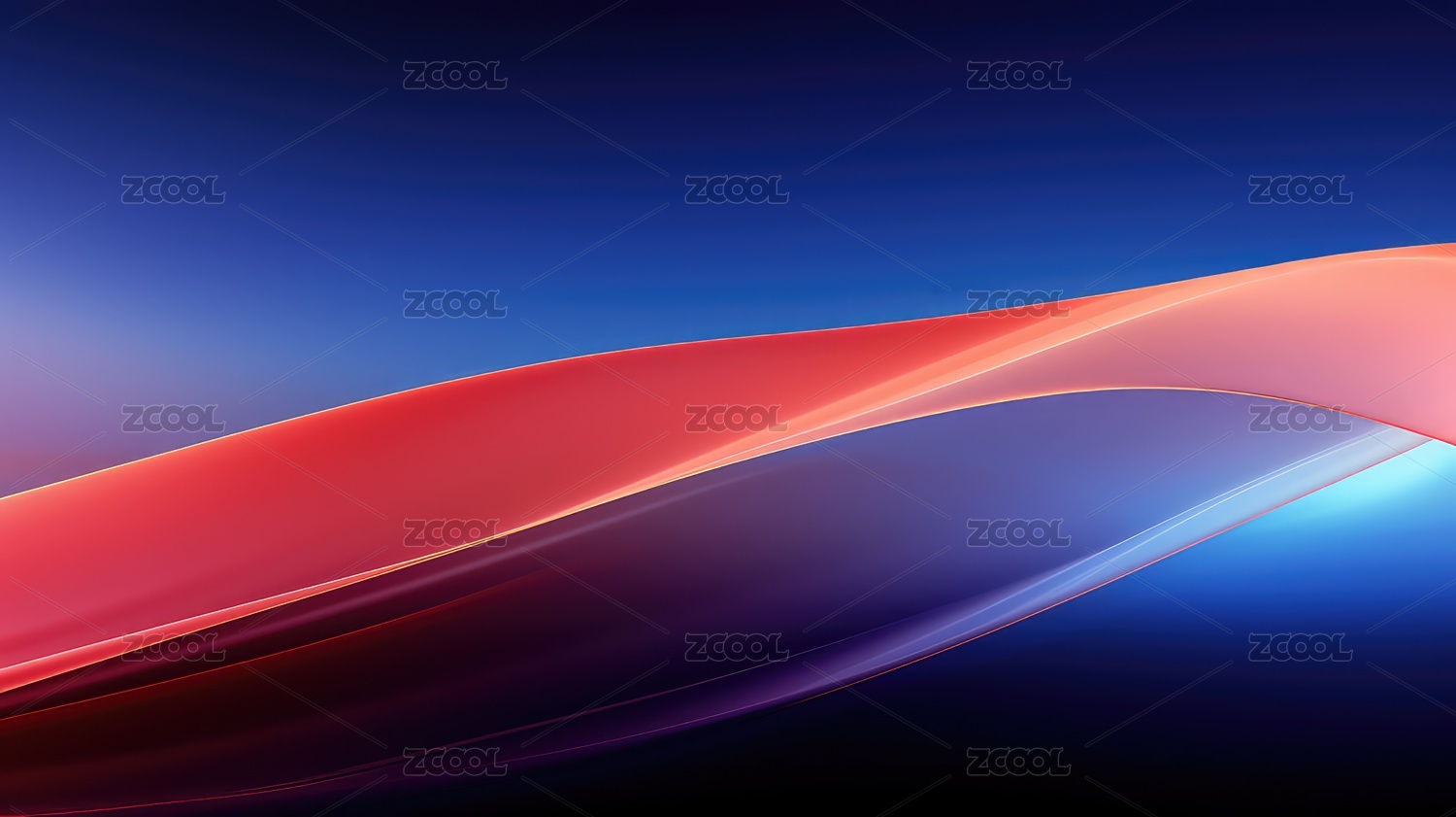抽象蓝色波浪与红光交相辉映