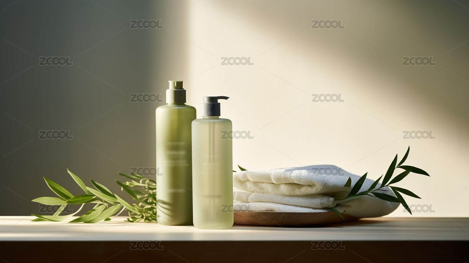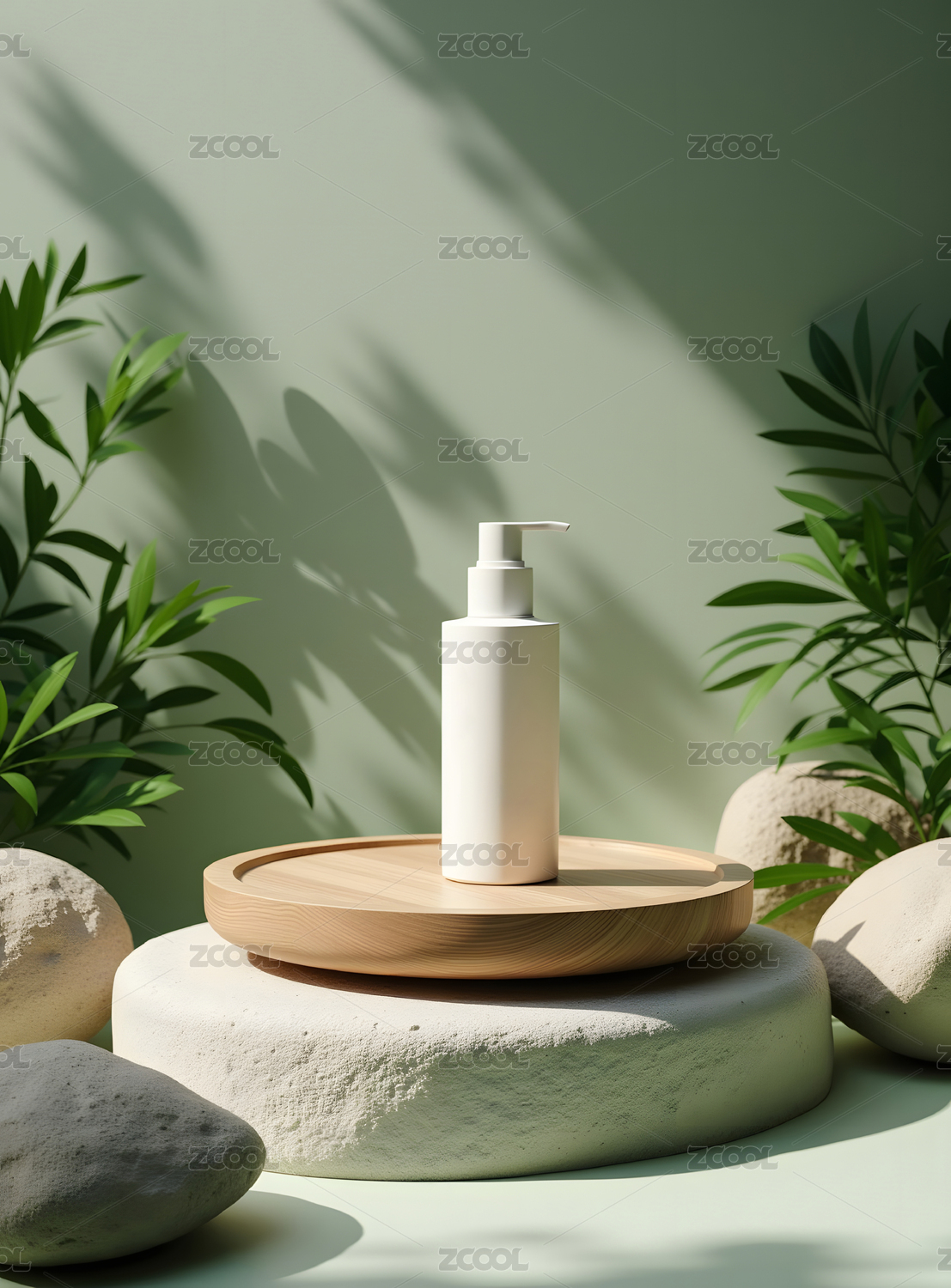 简约护肤品与自然元素展示