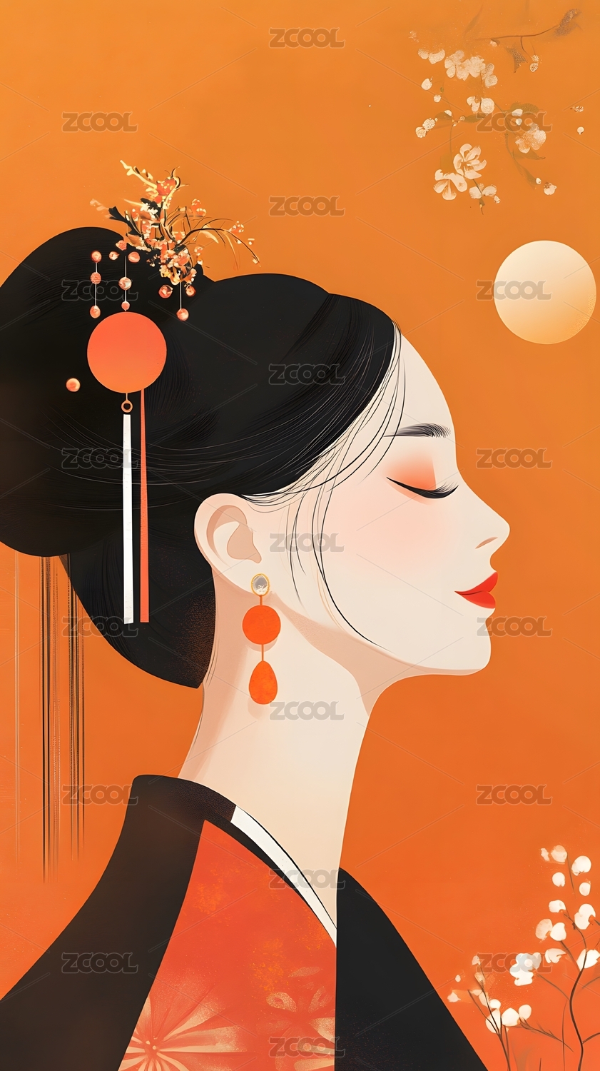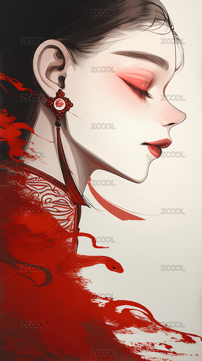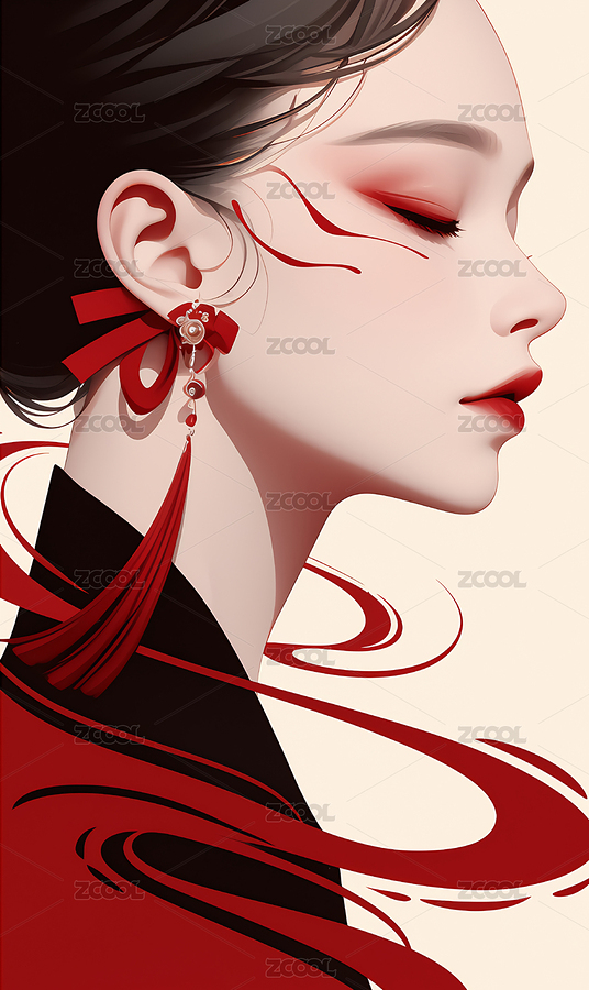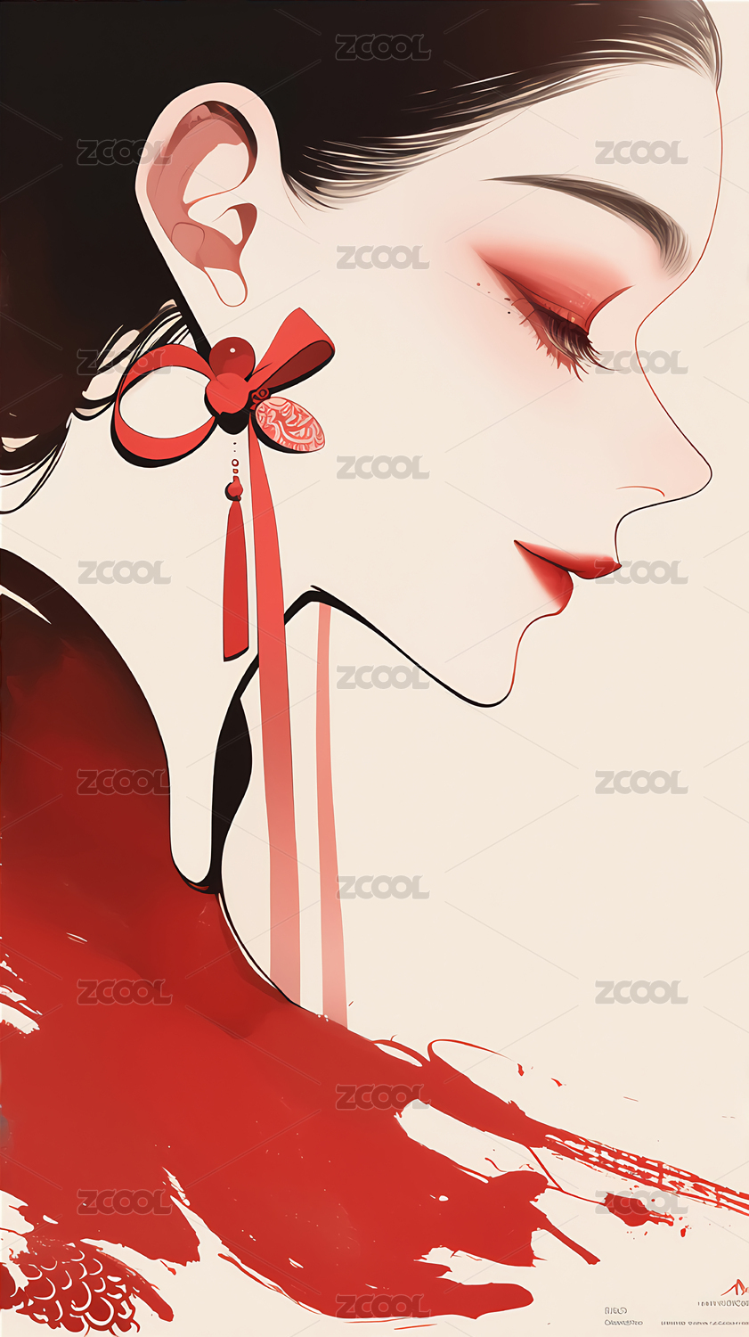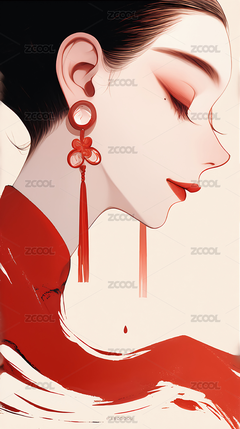 红色,汉服,服饰,国潮,国风,背景,壁纸,人物,女孩,美女