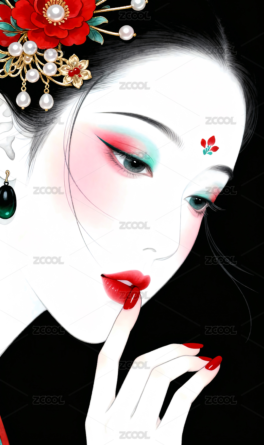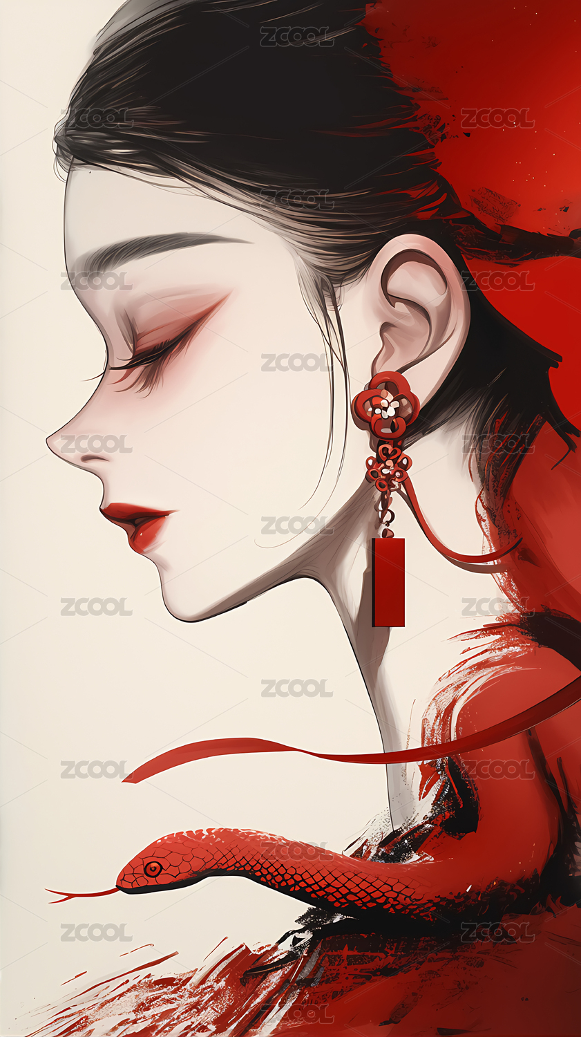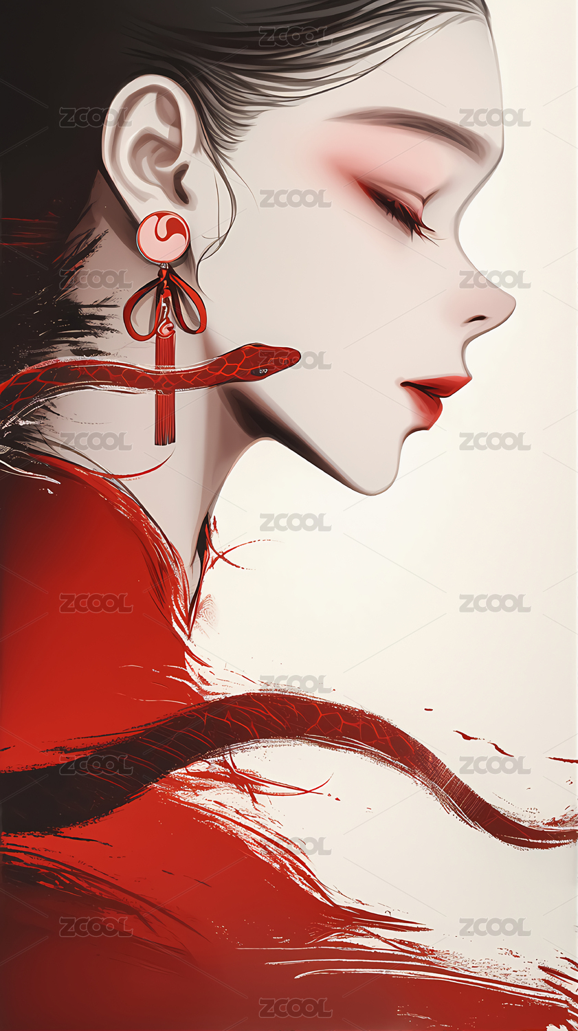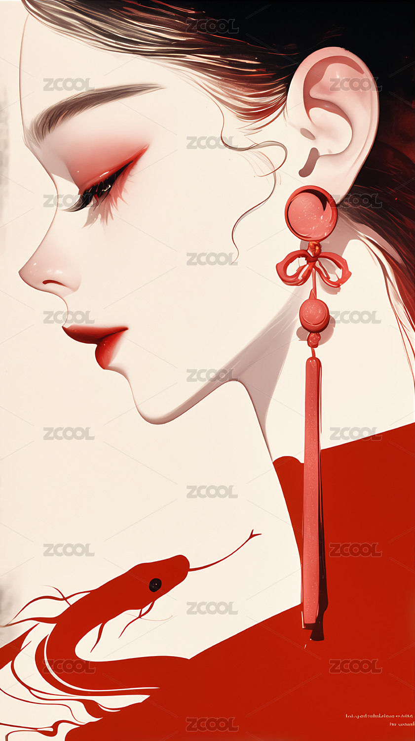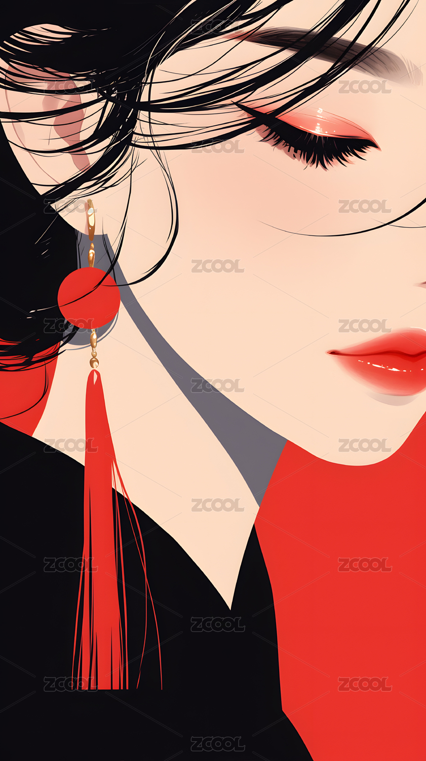 红色,汉服,服饰,国潮,国风,背景,壁纸,人物,女孩,美女