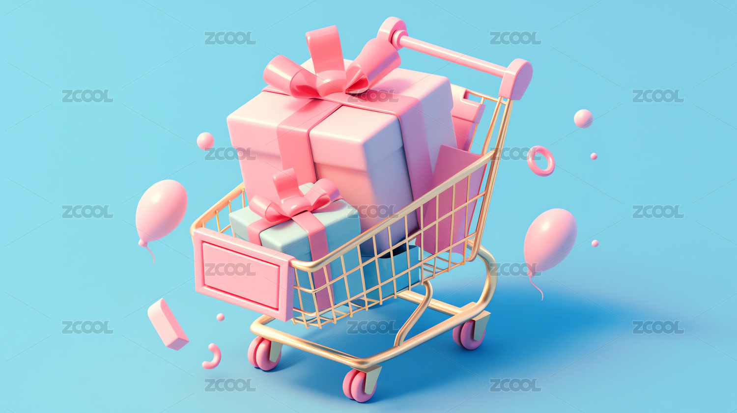 购物车,购物节,节日,新年,促销,年货节,礼物,礼品盒,蓝色,光影