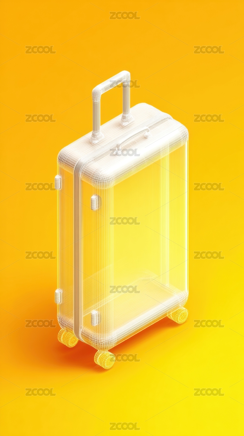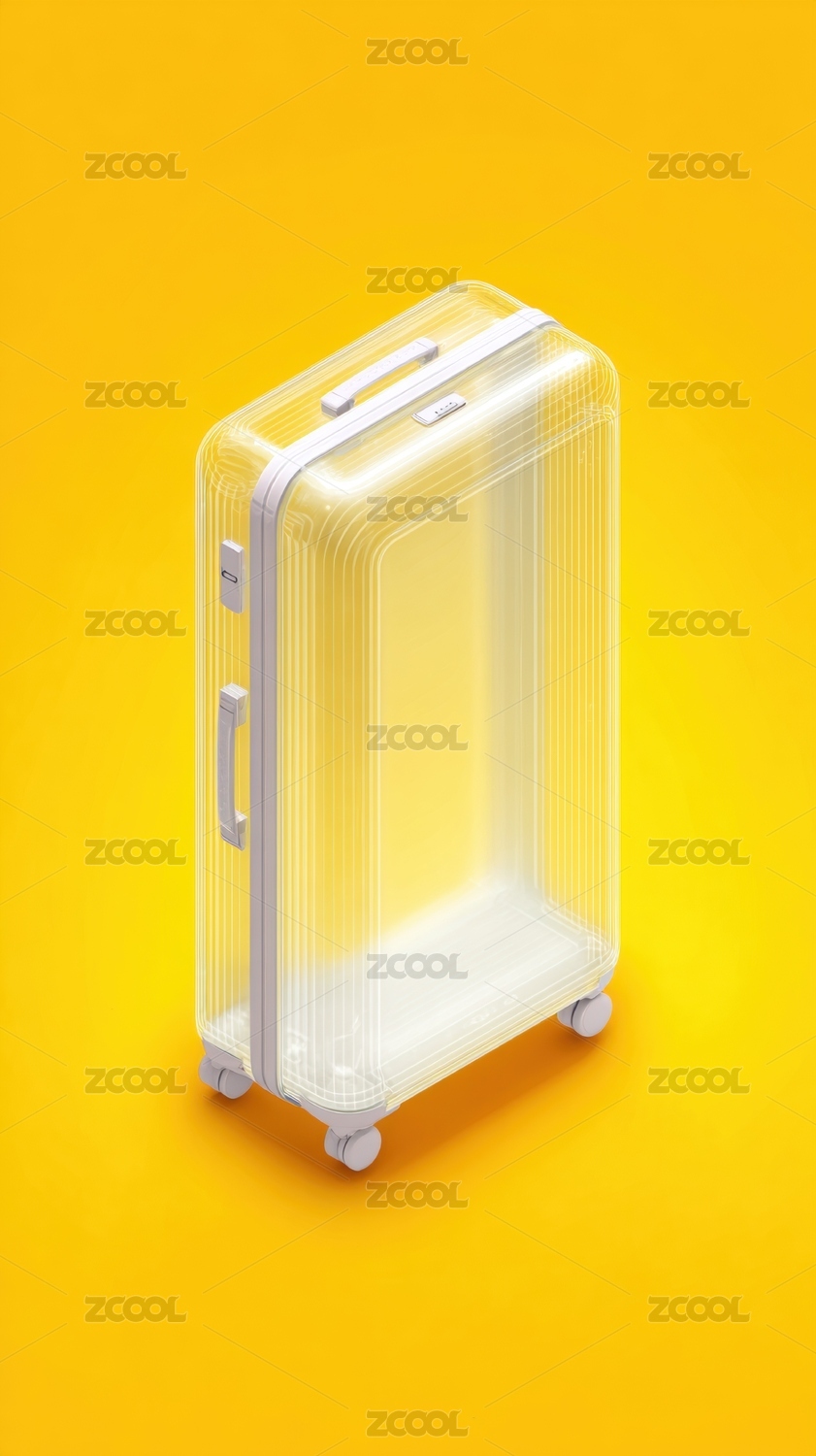 透明行李箱置于黄色背景