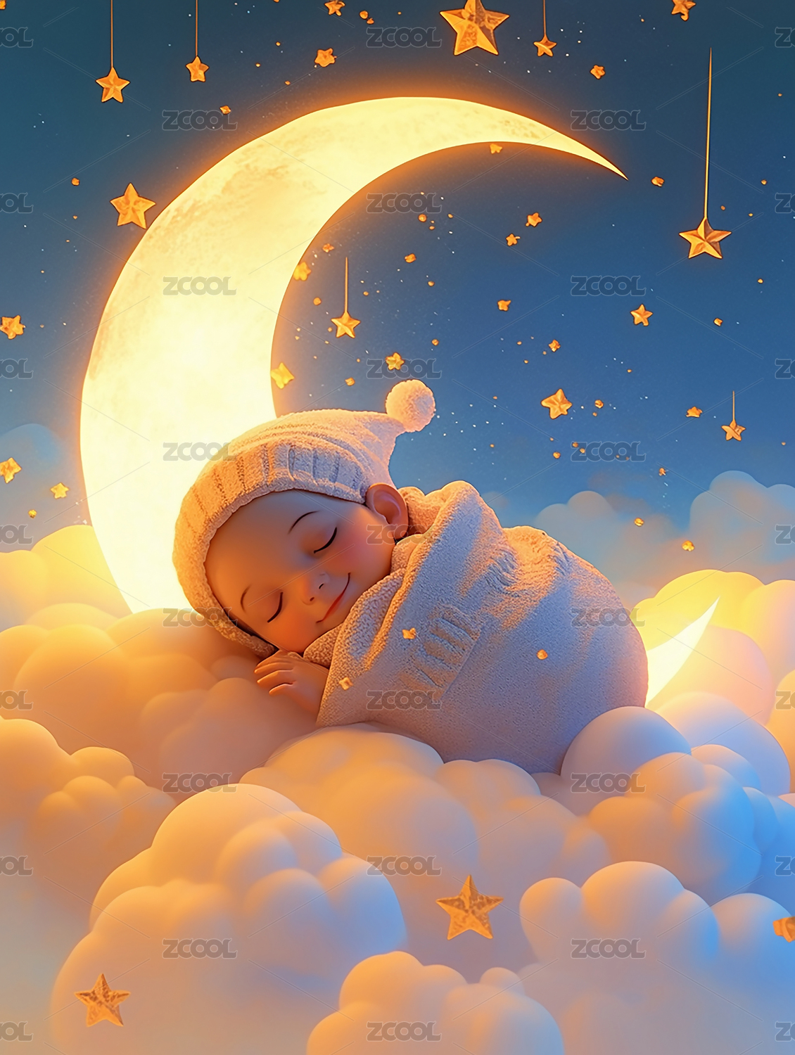 可爱的熟睡中的卡通婴儿