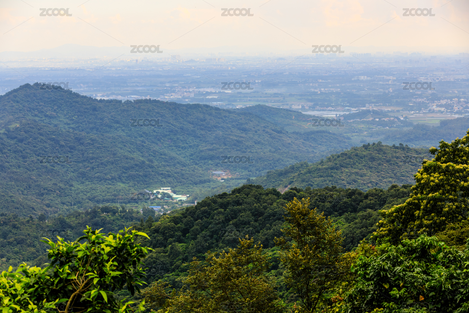 中国深圳,梧桐山顶脚下,白云大雾里的群山