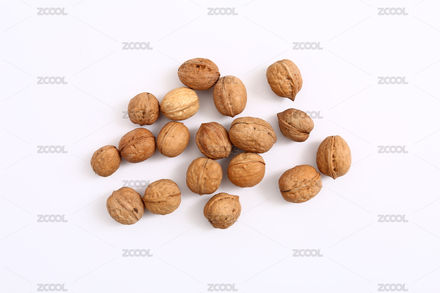 核桃放在白色的背景中