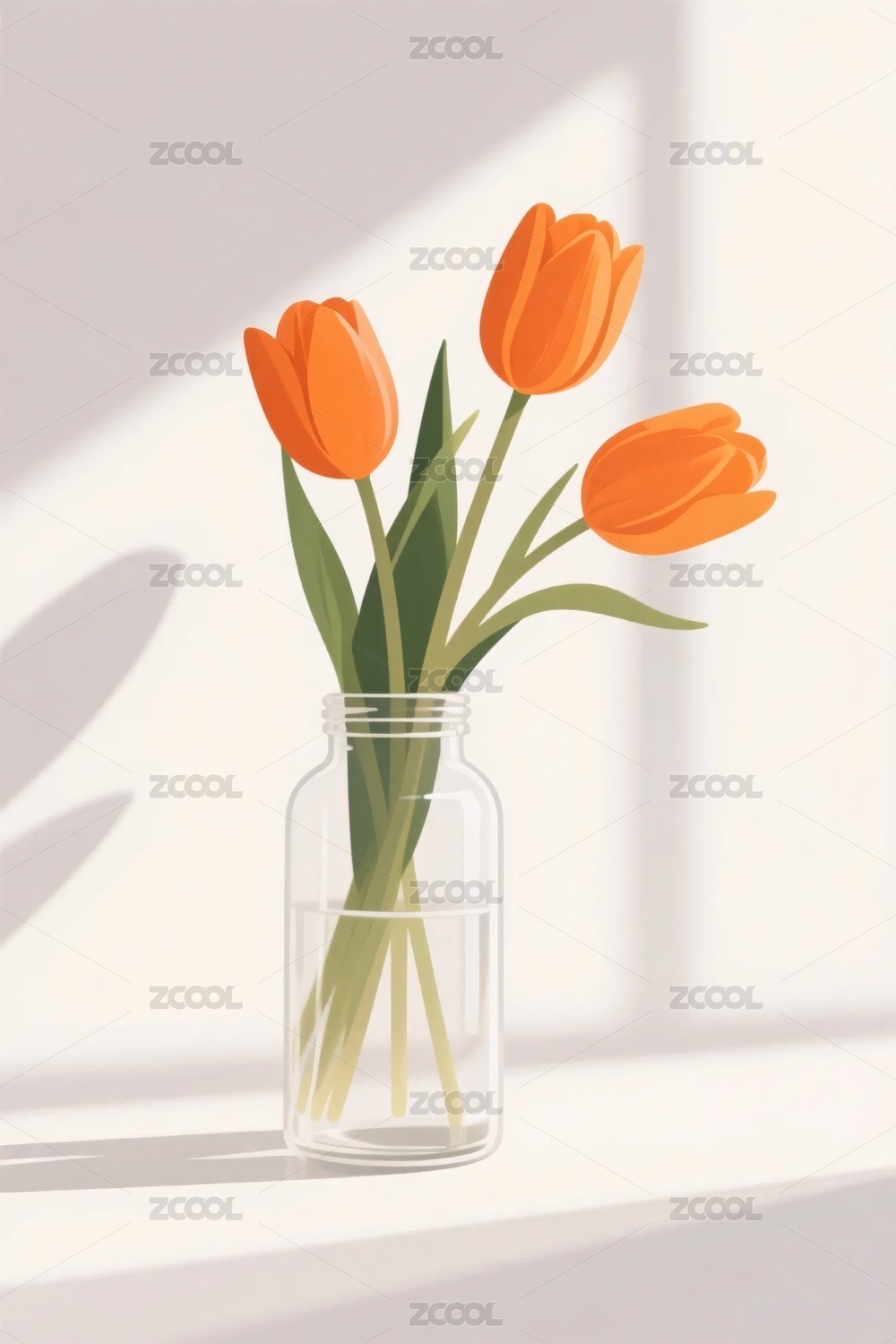 花瓶,窗台,插画,扁平风,墙壁,花朵,阳光