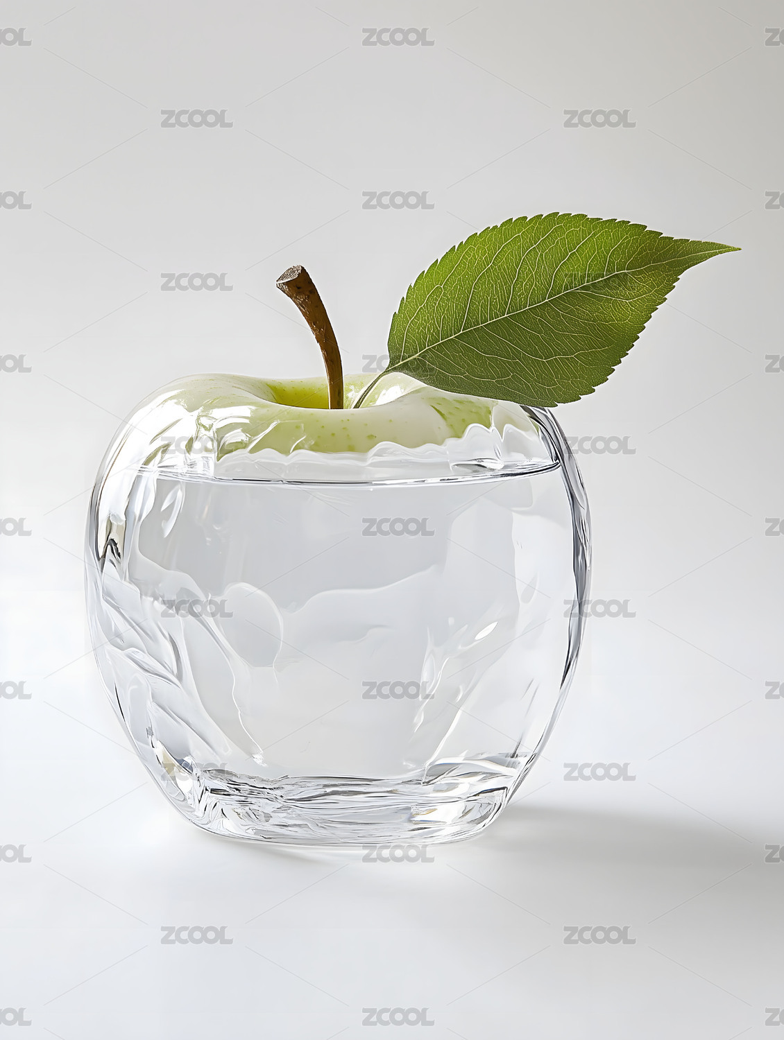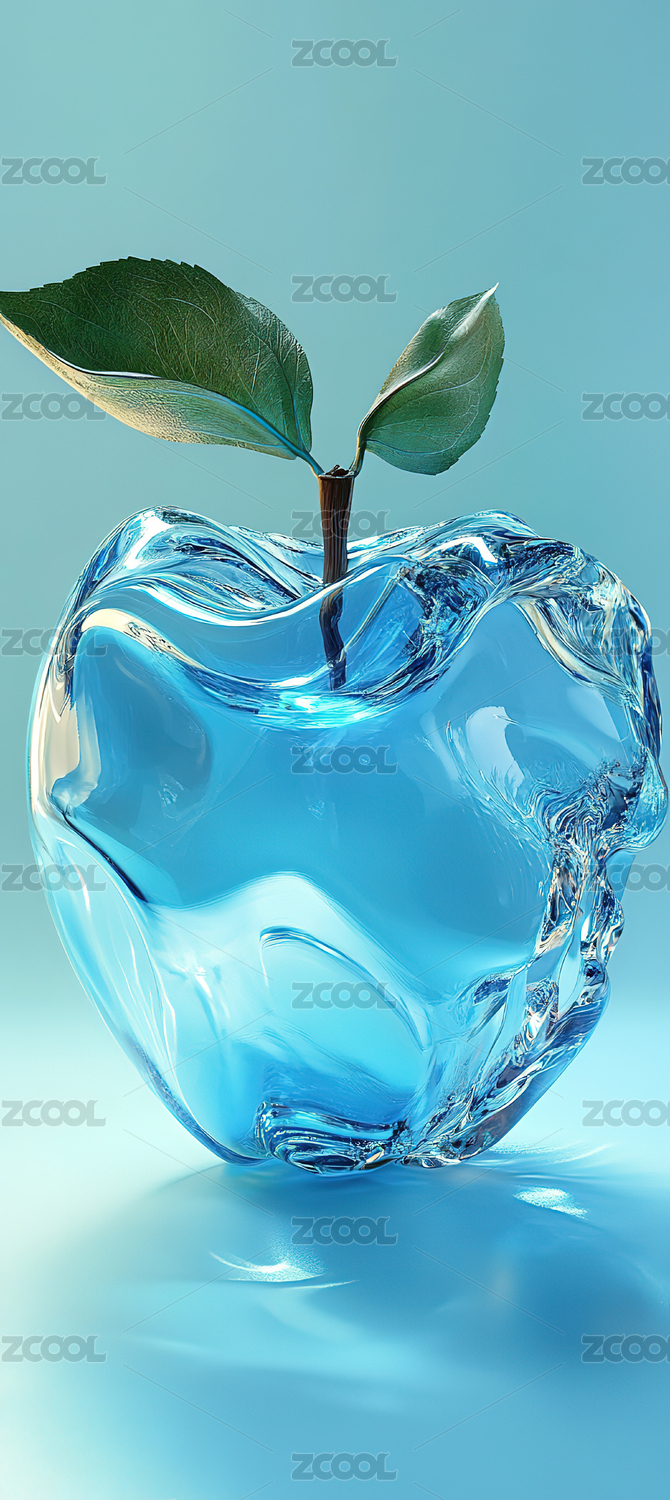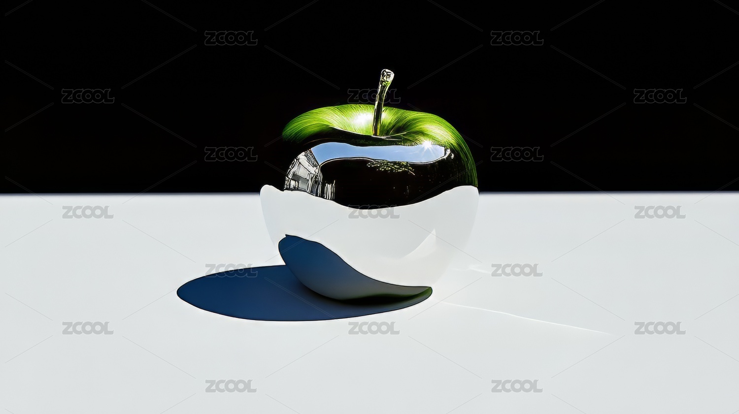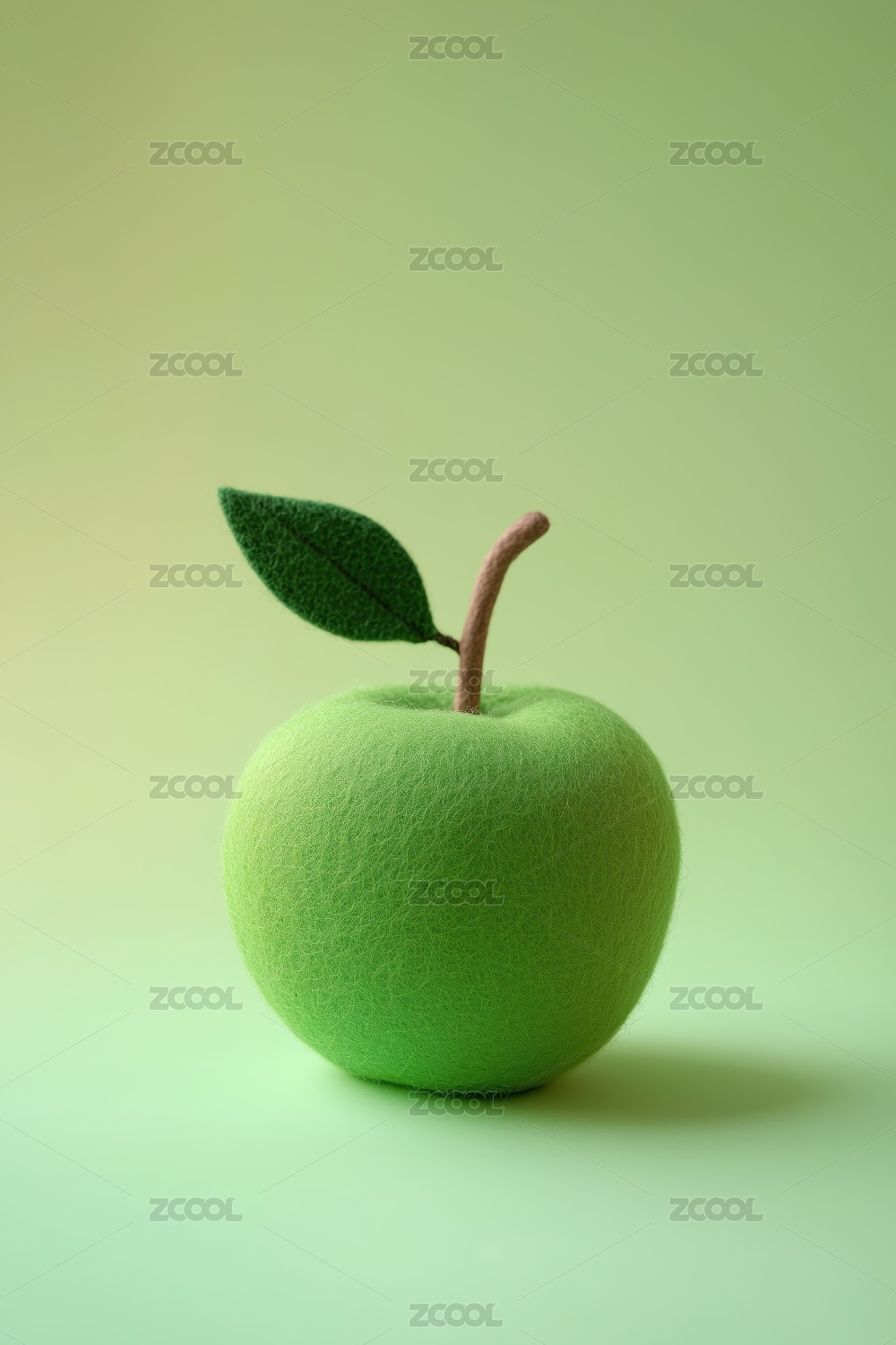 桌上一个糖果色羊毛毡毛绒苹果3D卡通插画