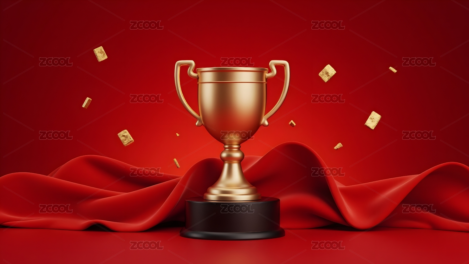 红色背景下的金色奖杯