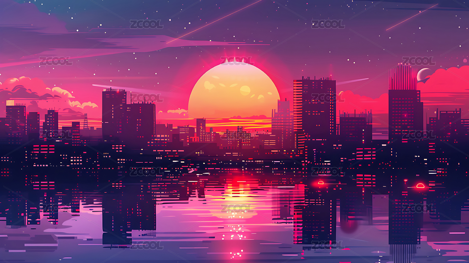 都市风景,城市天际线,城市,建筑,AI数字艺术,夜晚,摩天大楼,科学技术,背景,户外