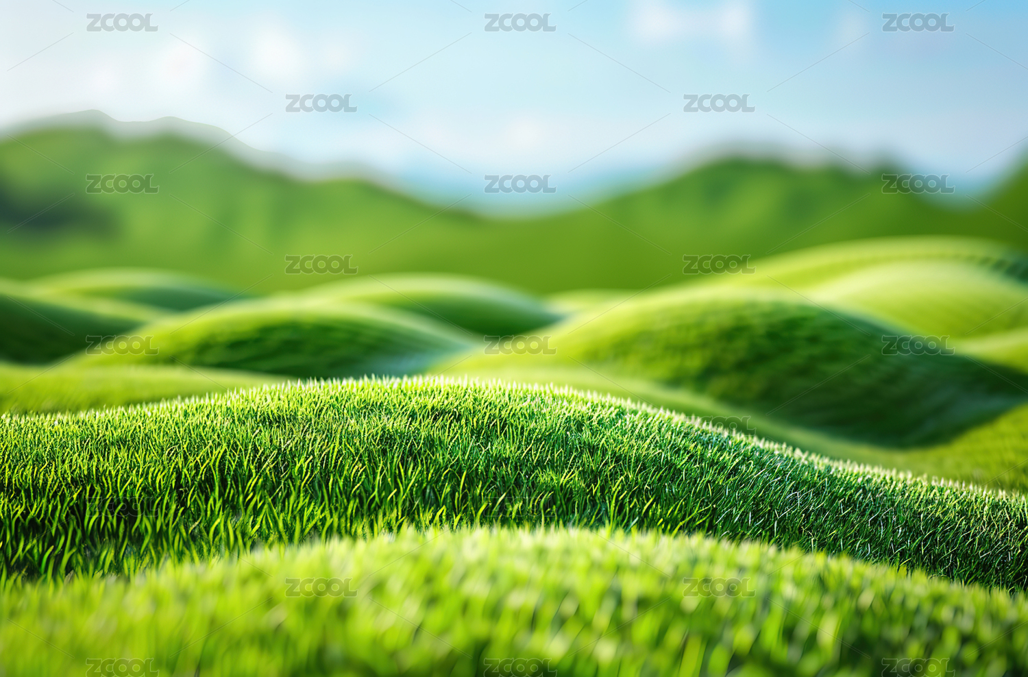 朝阳下绿草如茵的丘陵,晶莹露珠闪耀光芒