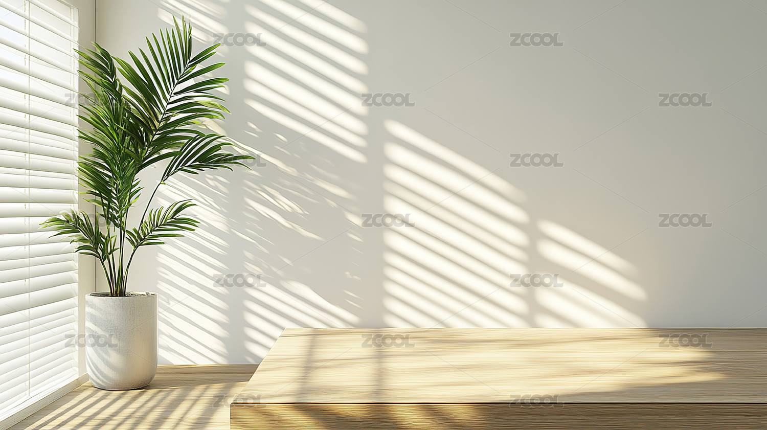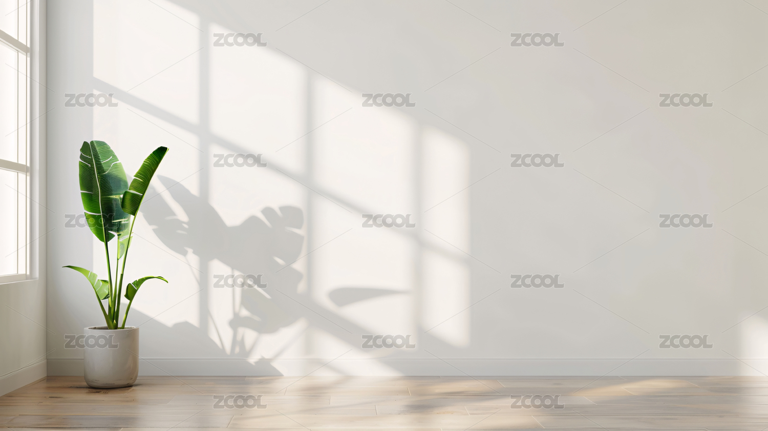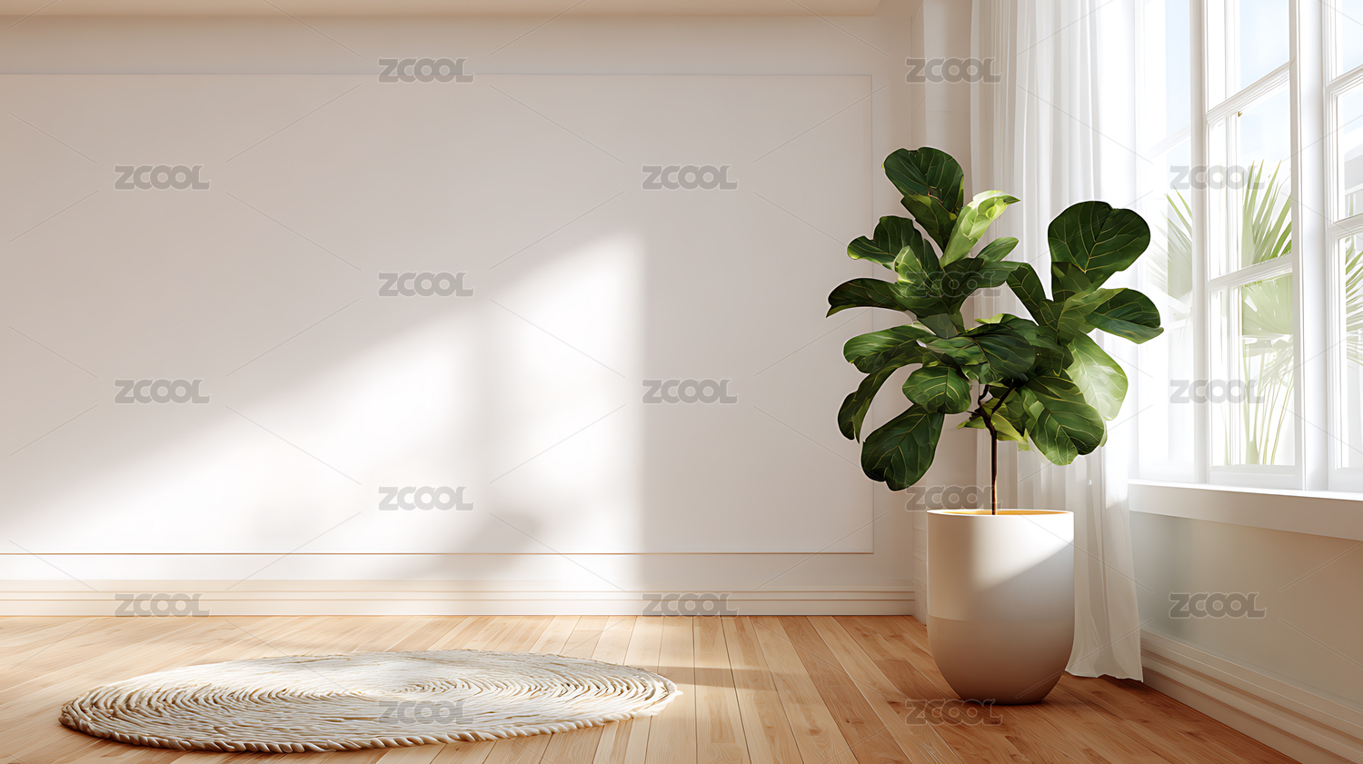 干净的室内白墙和绿植装饰简约空白渲染背景