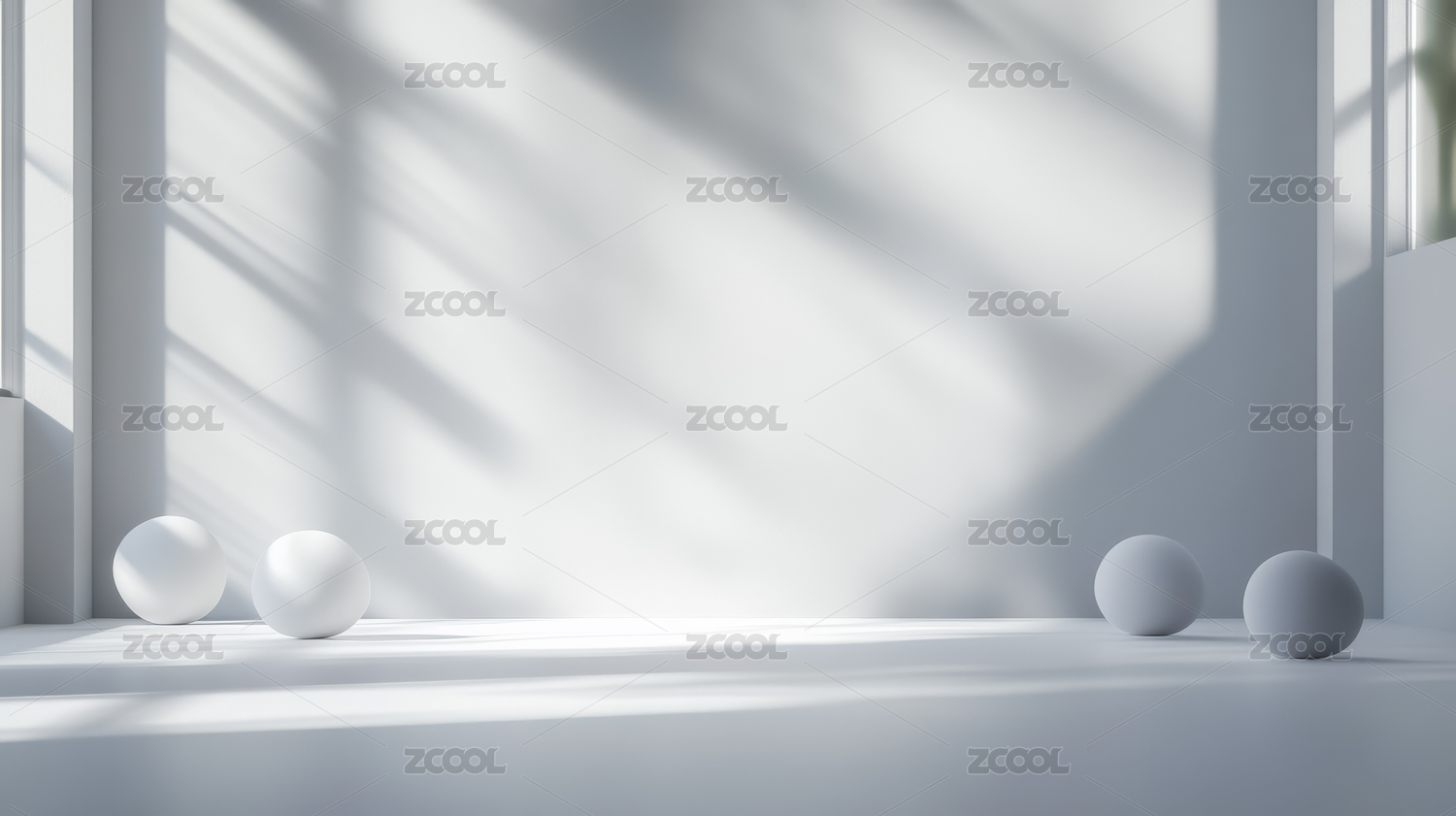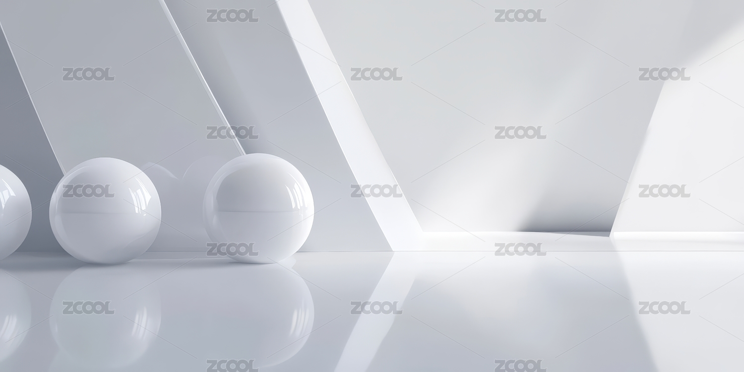 简洁白色空间中的球体与光影