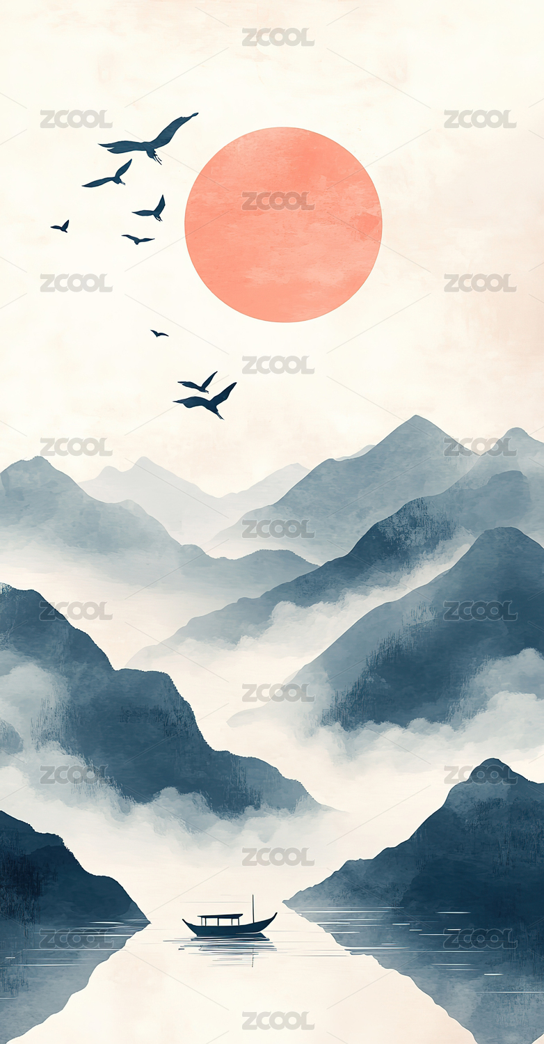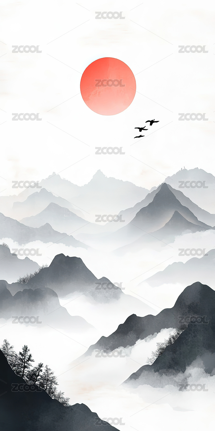 高山,自然,地形,风景,中国画,背景,艺术,节气,水墨画,插画