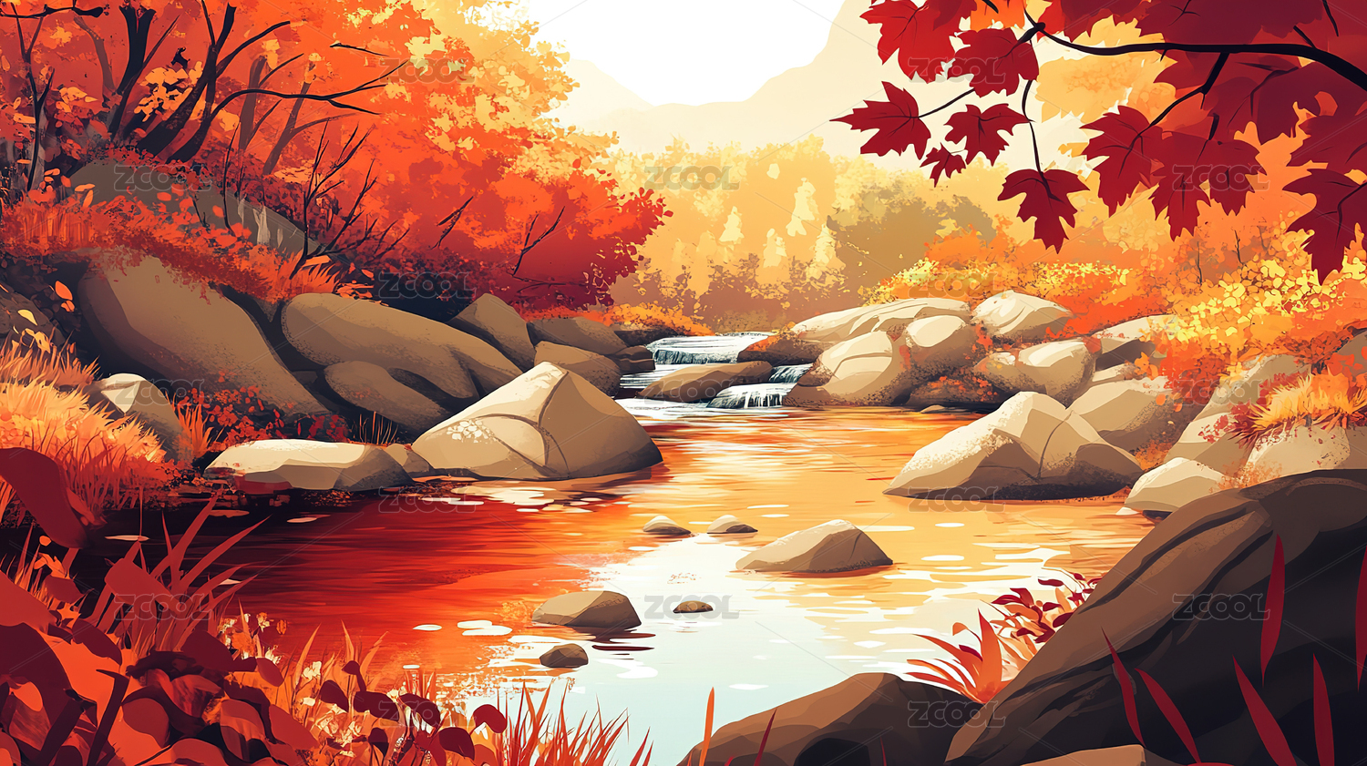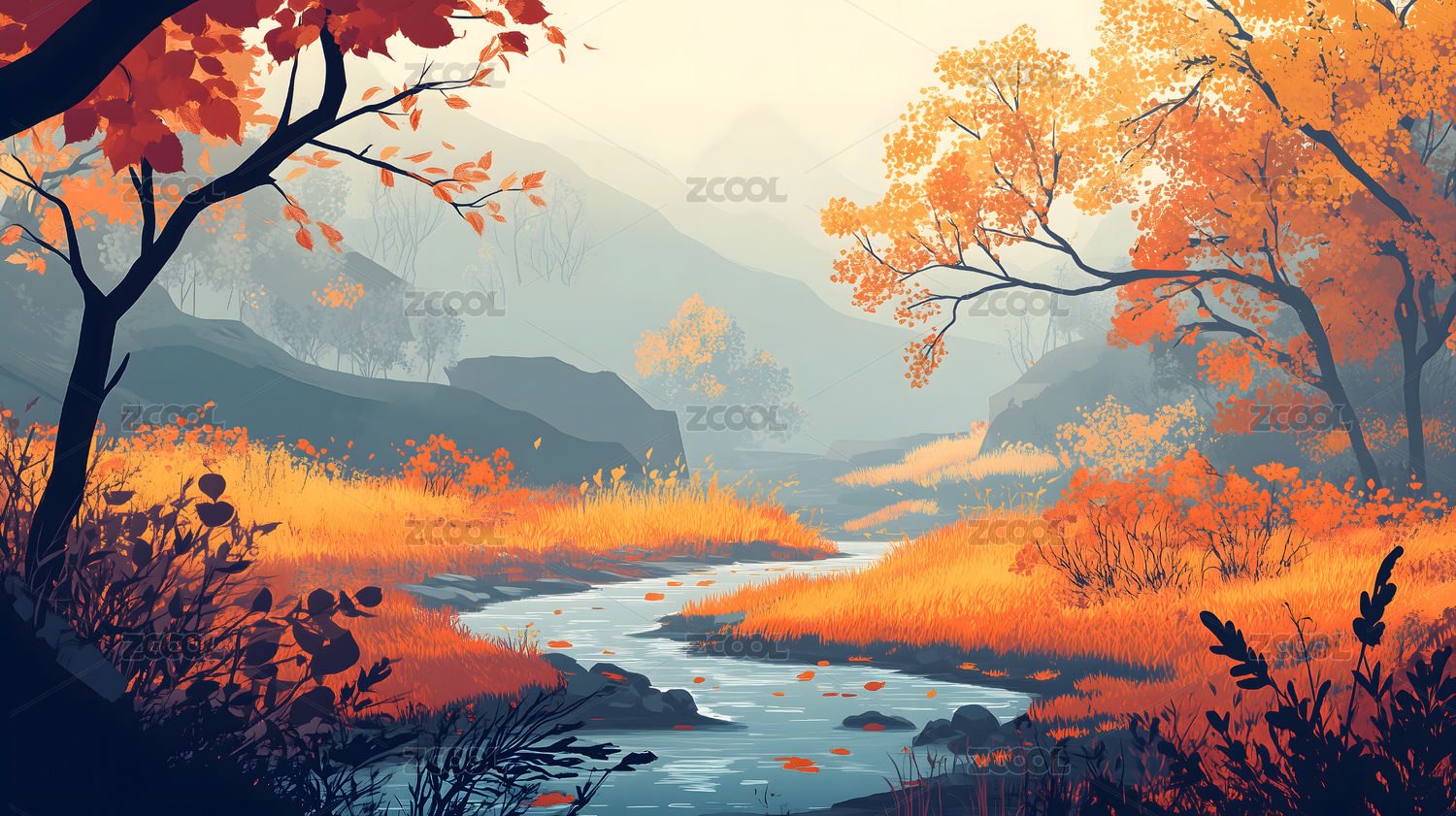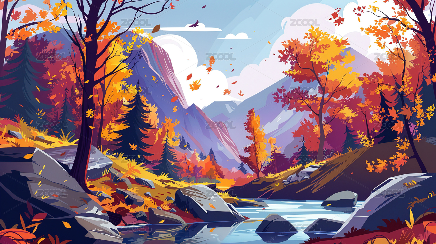 秋天,风景,户外,树,植物,背景,插画,自然,天空,地形
