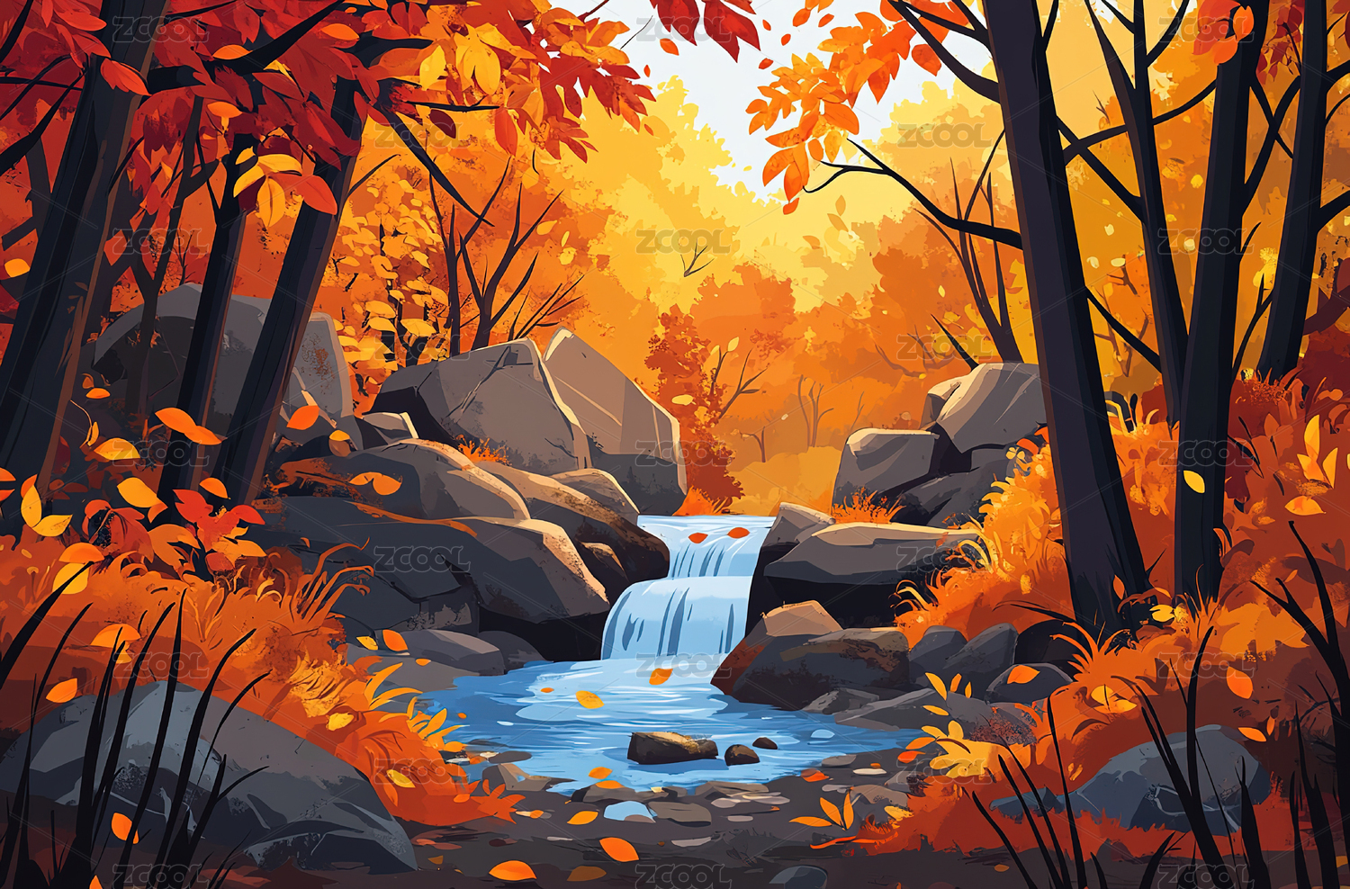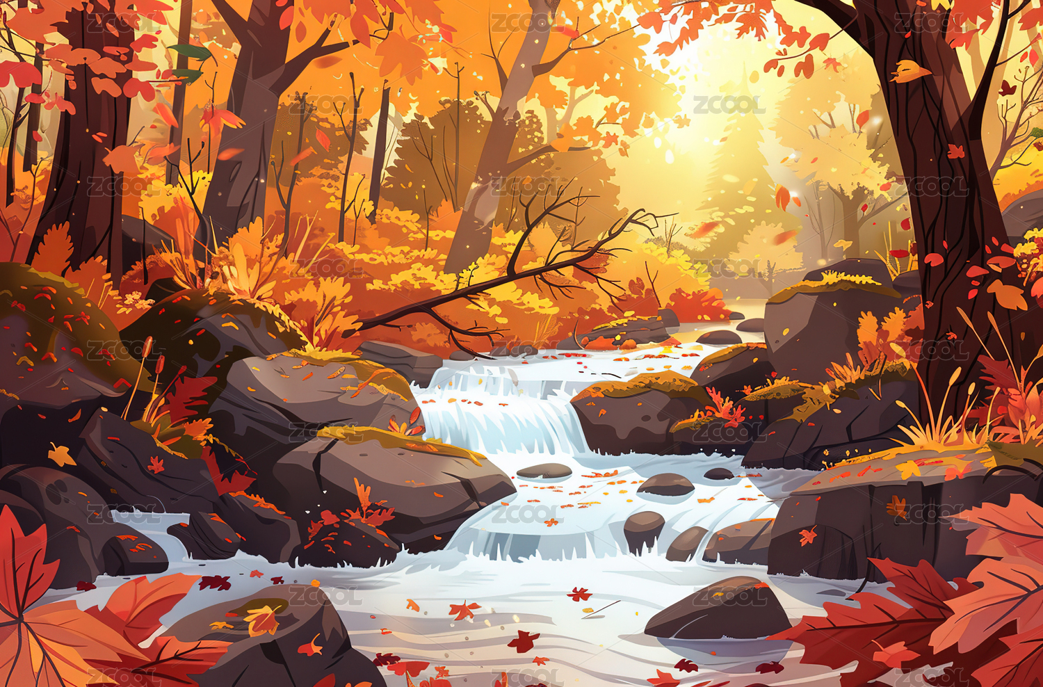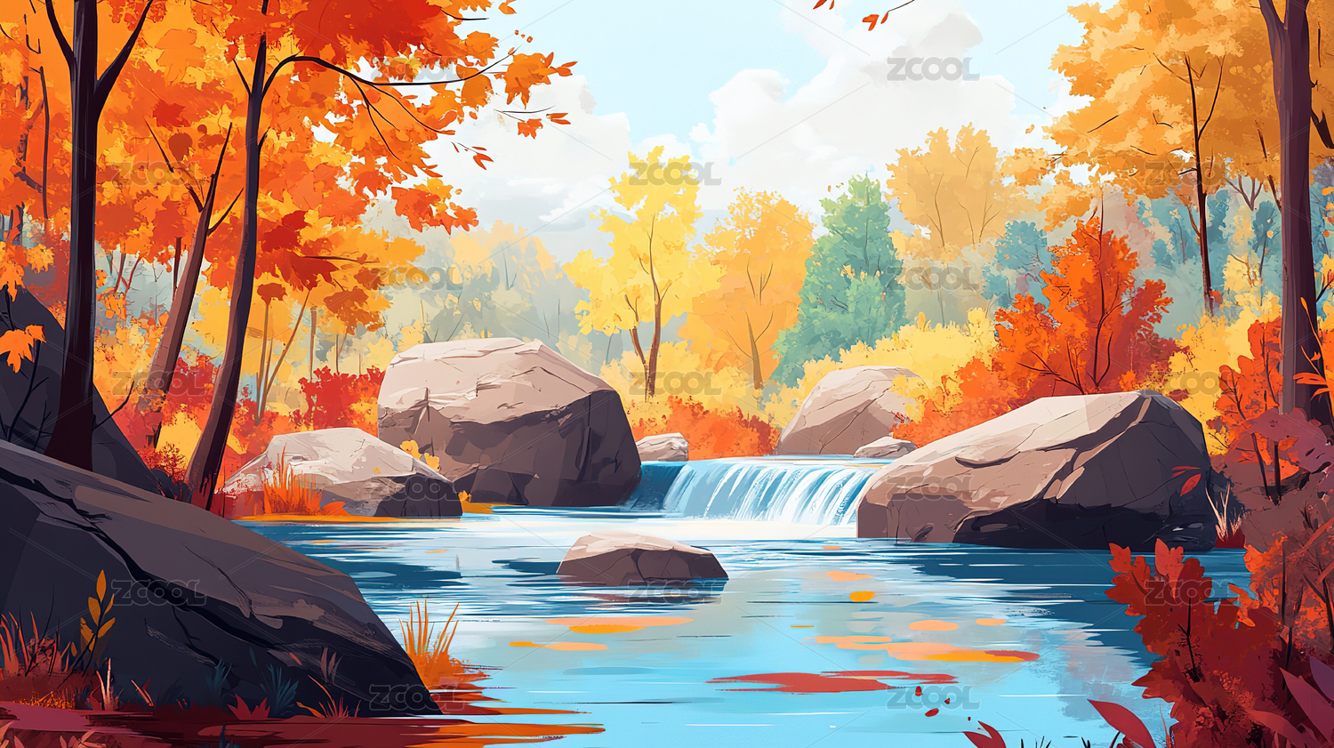 秋天,风景,户外,树,植物,背景,插画,自然,天空,地形
