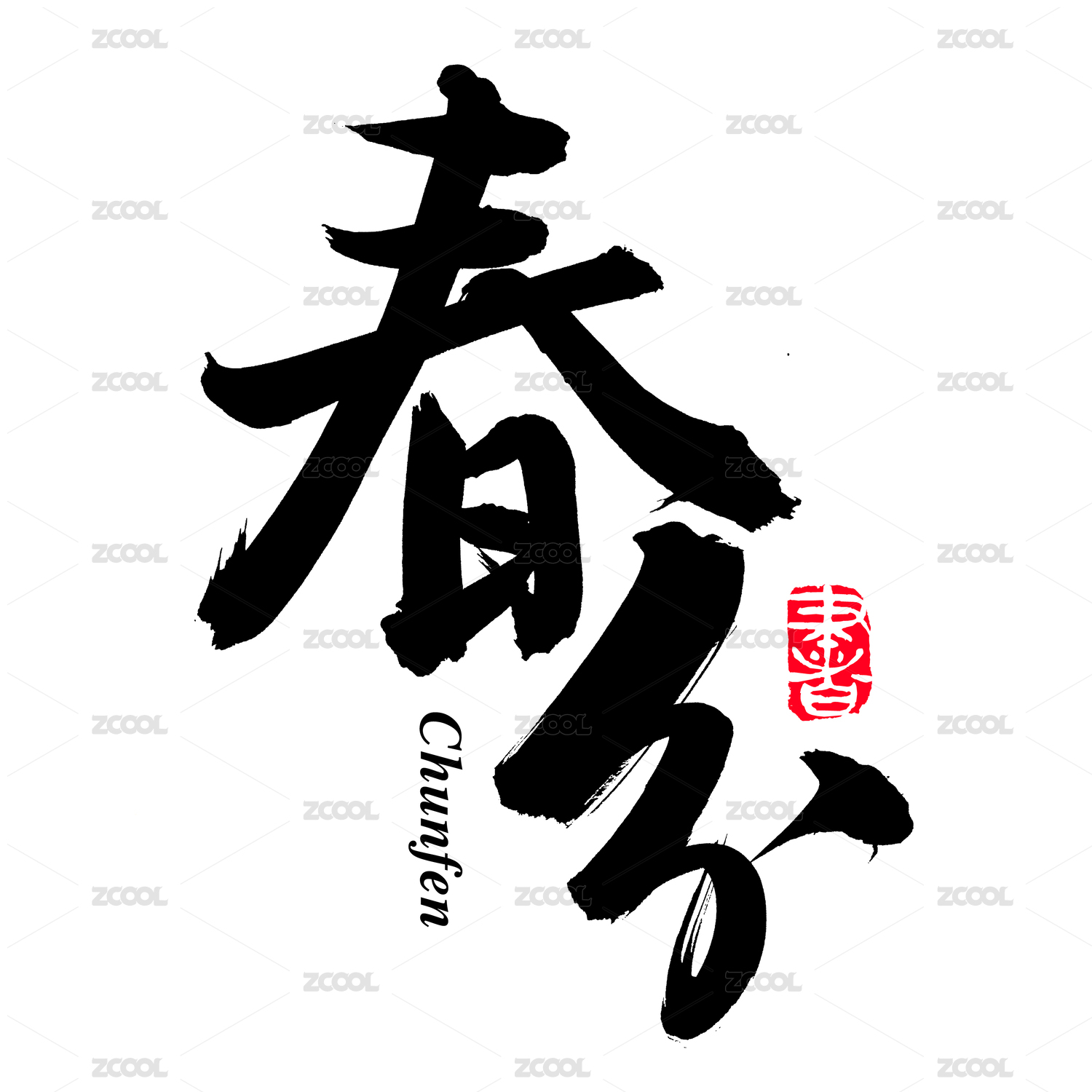 中国风春分节气书法印章字体矢量图