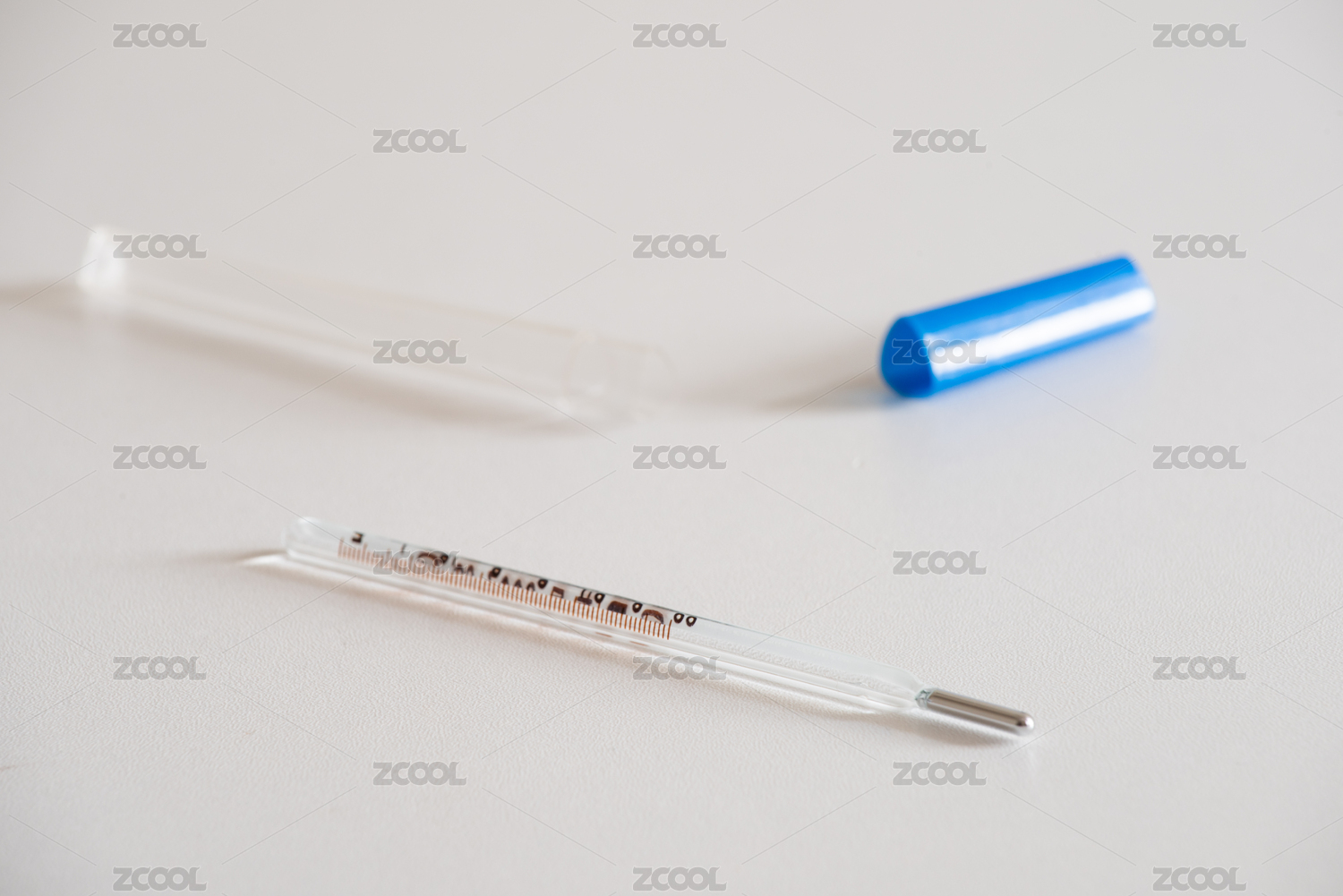 蓝色背景上放着体温计