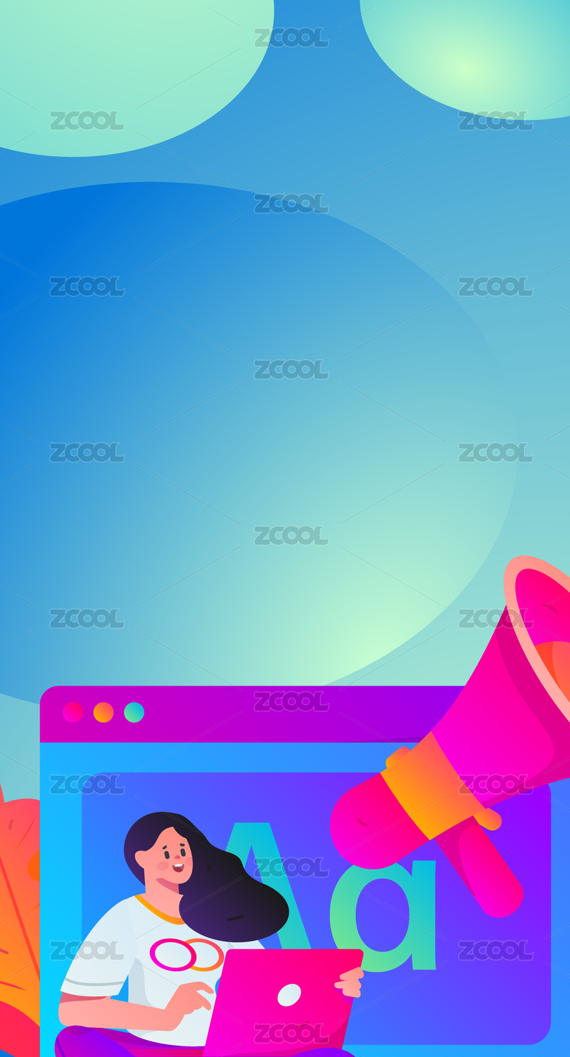 卡通手绘手机电商购物网购海报闪屏插画背景