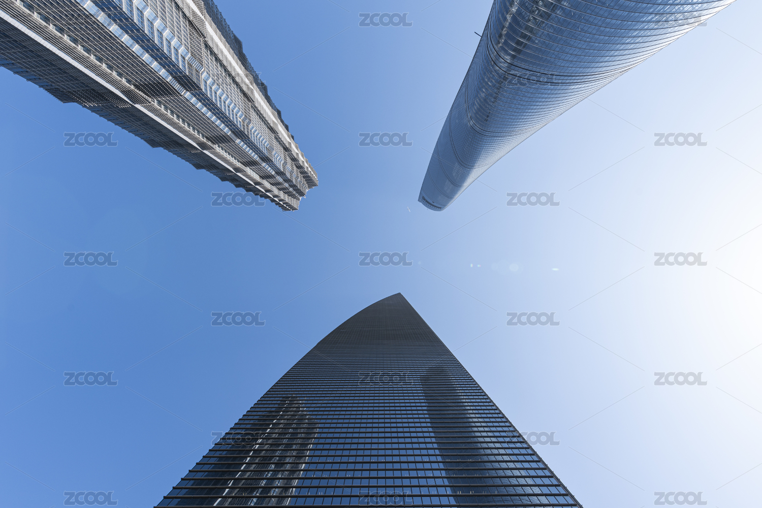 上海陆家嘴低视角仰望摩天大楼