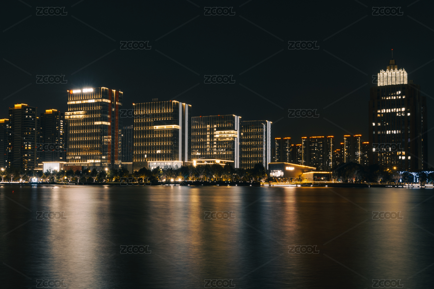 佛山千灯湖公园城市高楼建筑夜景灯光