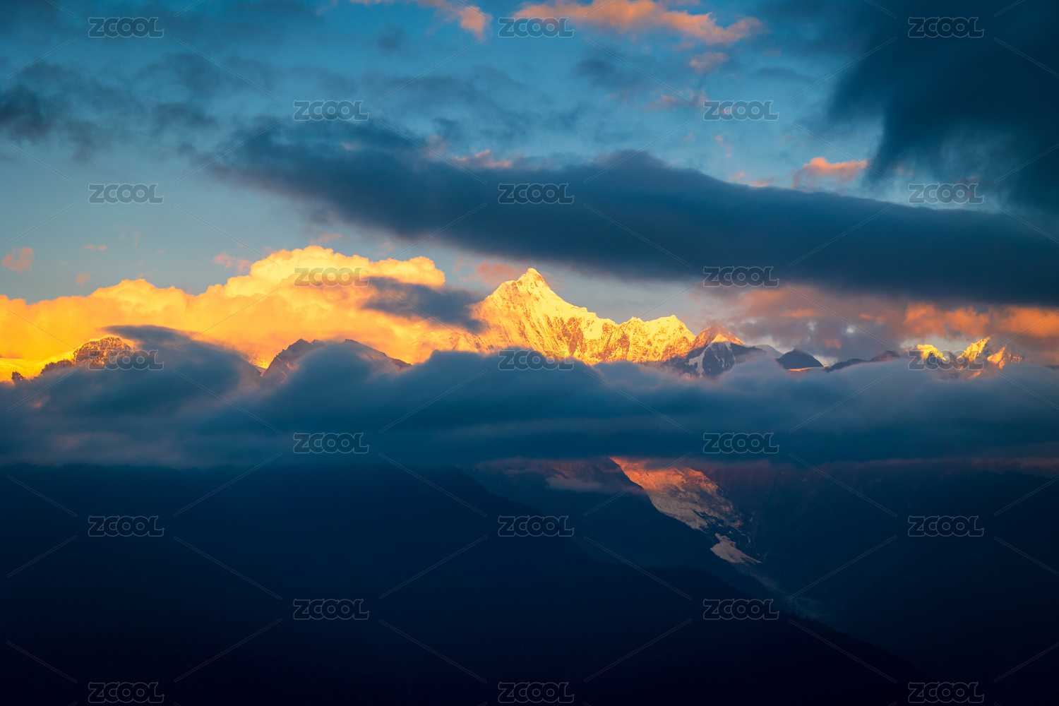 中国云南省香格里拉梅里雪山日照金山自然风光