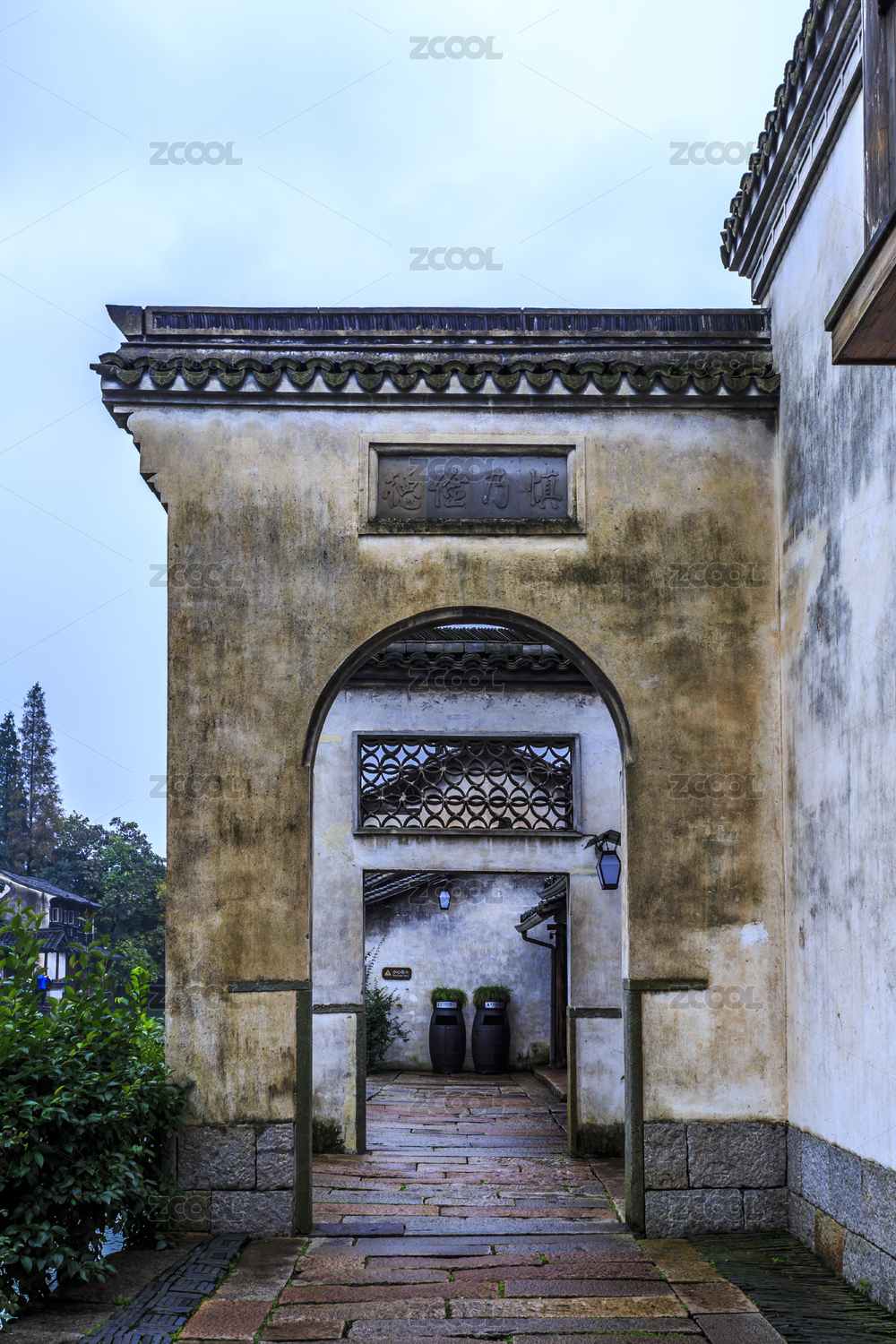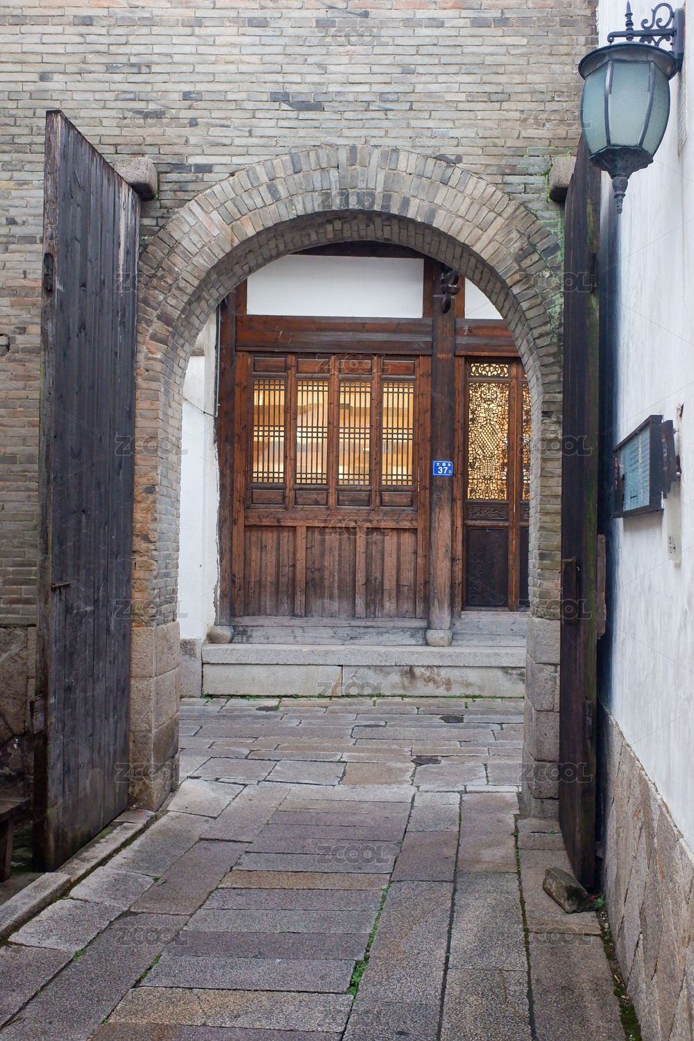 皖南民居徽派拱门小巷,中国安徽省徽州呈坎