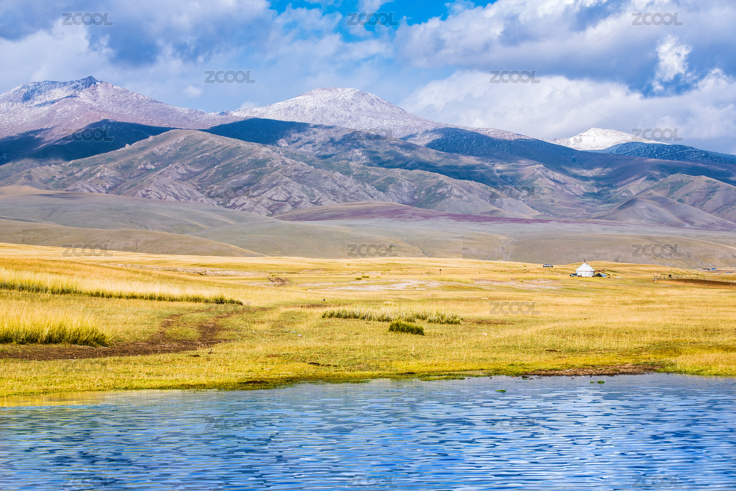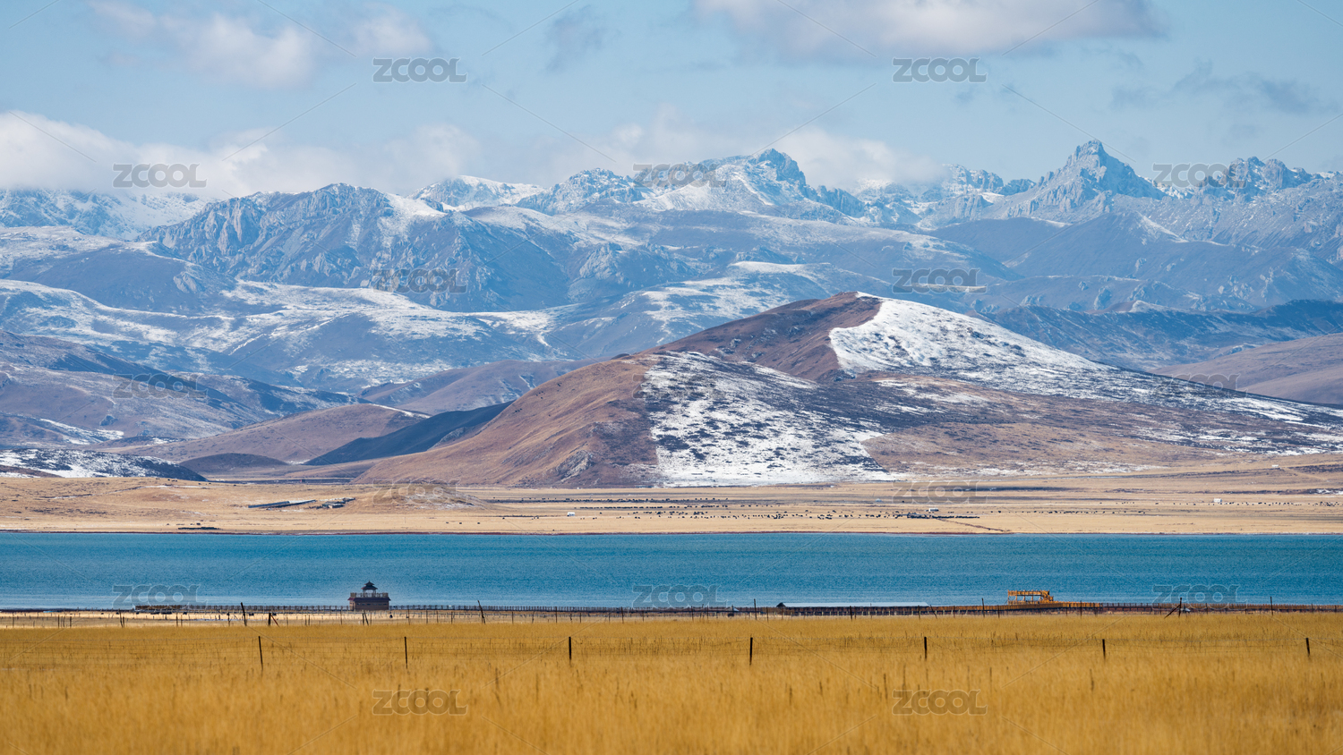 四川,甘孜州,炉霍县,卡萨湖,湖泊,湖,蓝天白云,山,水草,水鸟