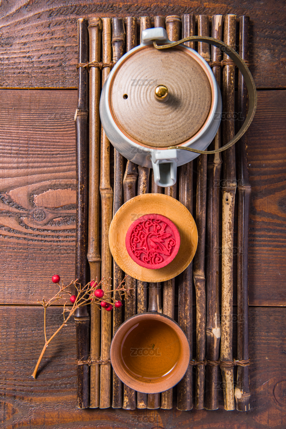 复古风格的中国中秋节传统美食月饼和茶